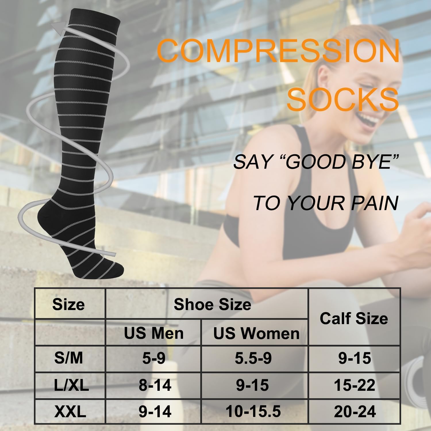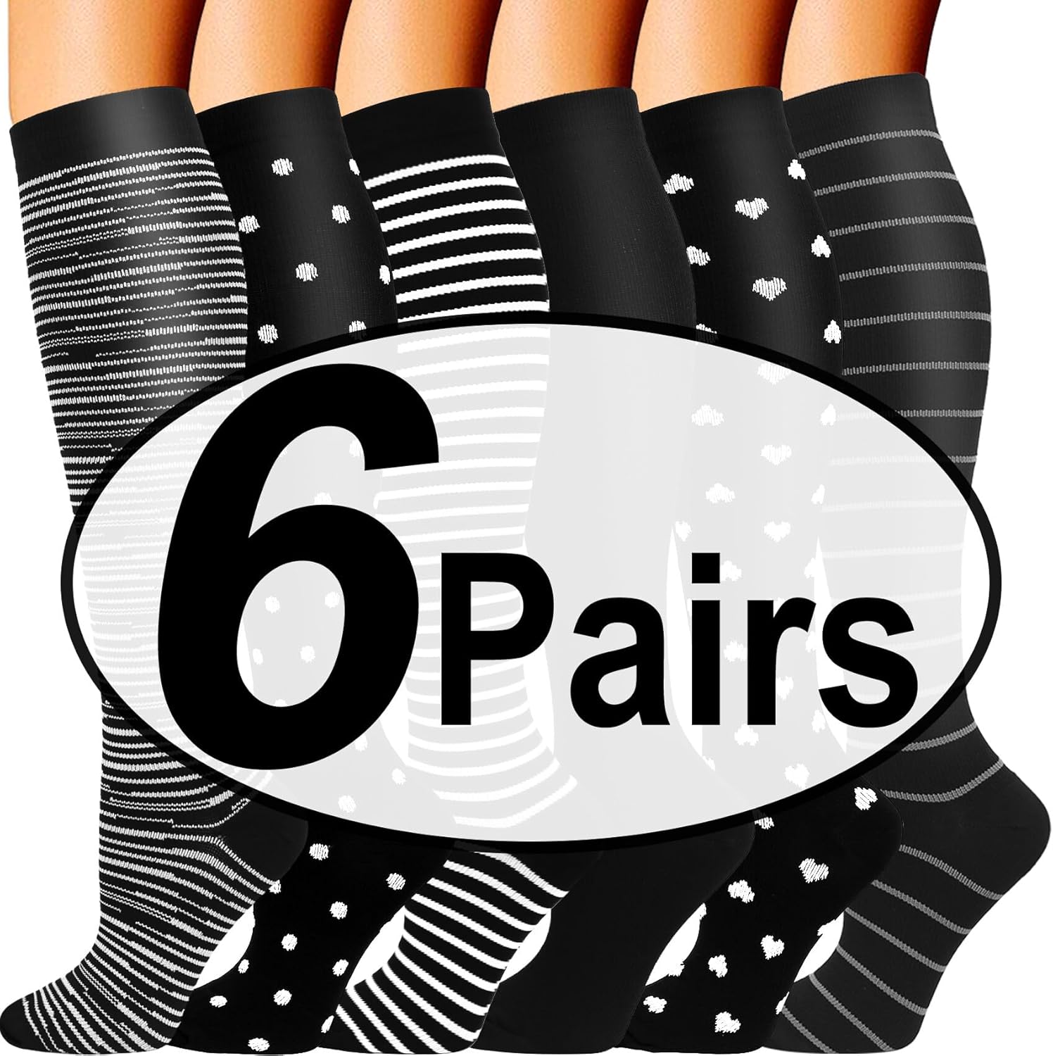 6 pares de meias de especificações femininas e masculinas de 20 a 30 mmHg meias de especificações de alta para voos atléticos, viagens e enfermeiras