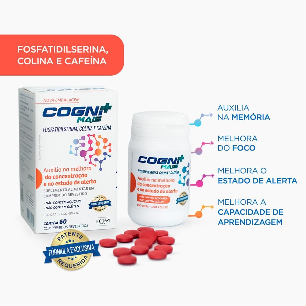 Cognimais+ é um suplemento alimentar projetado para auxiliar na concentração e memória. Com uma fórmula exclusiva, este produto contém ingredientes como Fosfatidilserina, Cafeína, Colina, além de vitaminas e minerais. O uso regular pode contribuir para: