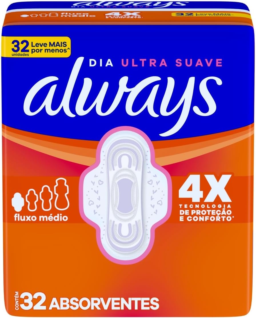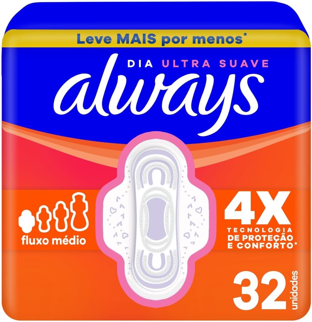 Absorvente Always Dia Ultra Suave com Abas Fluxo Médio, 4X Tecnologia de Proteção e Conforto*, 32 Unidades