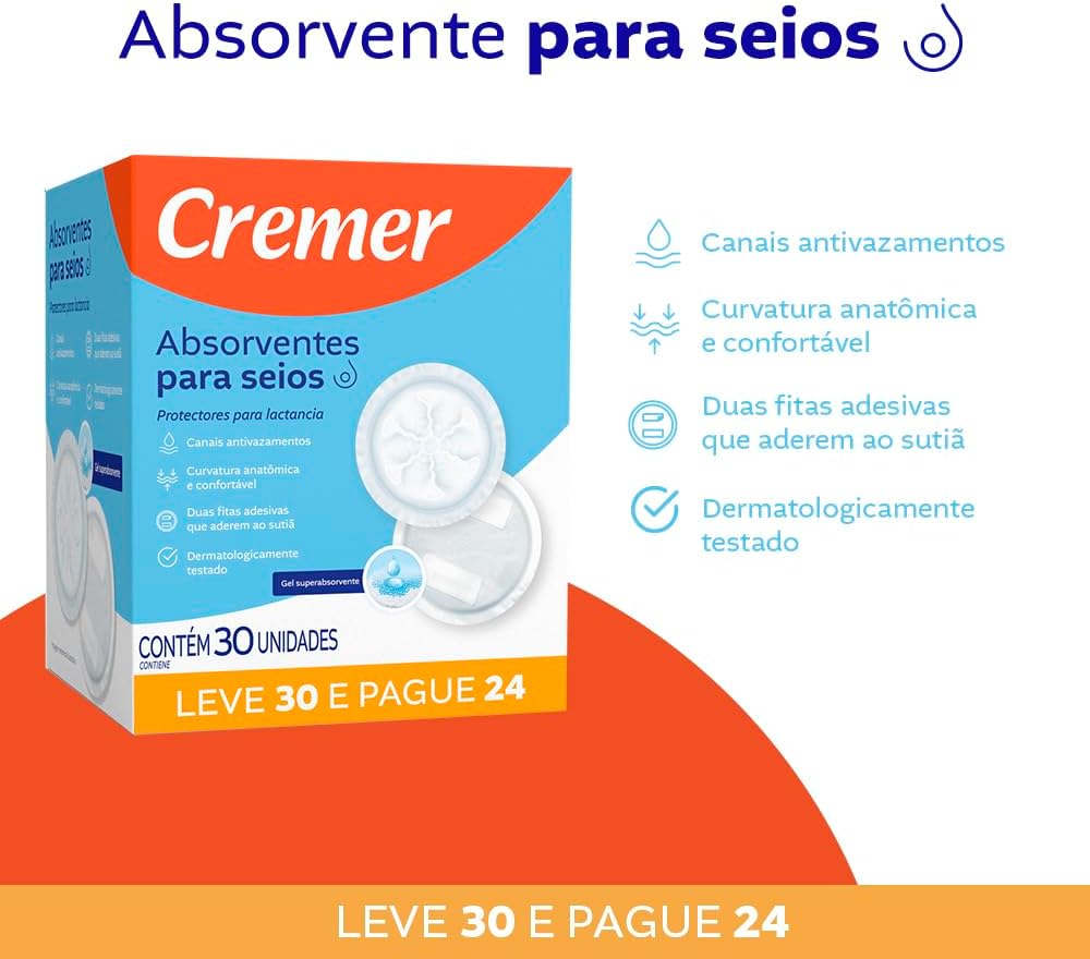 Os Absorventes para Seios Cremer foram desenvolvidos para absorver o excesso de leite materno durante o período de amamentação.