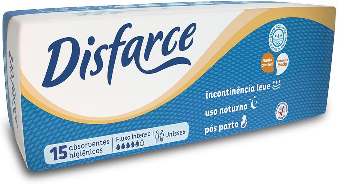 ABSORVENTE PÓS PARTO e INCONTINÊNCIA LEVE DISFARCE – 01 Fardo – 12 Pacotes – 180 Unidades