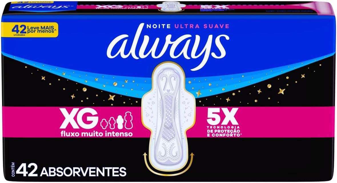 O absorvente Always Noites Tranquilas Suave é tamanho XG.