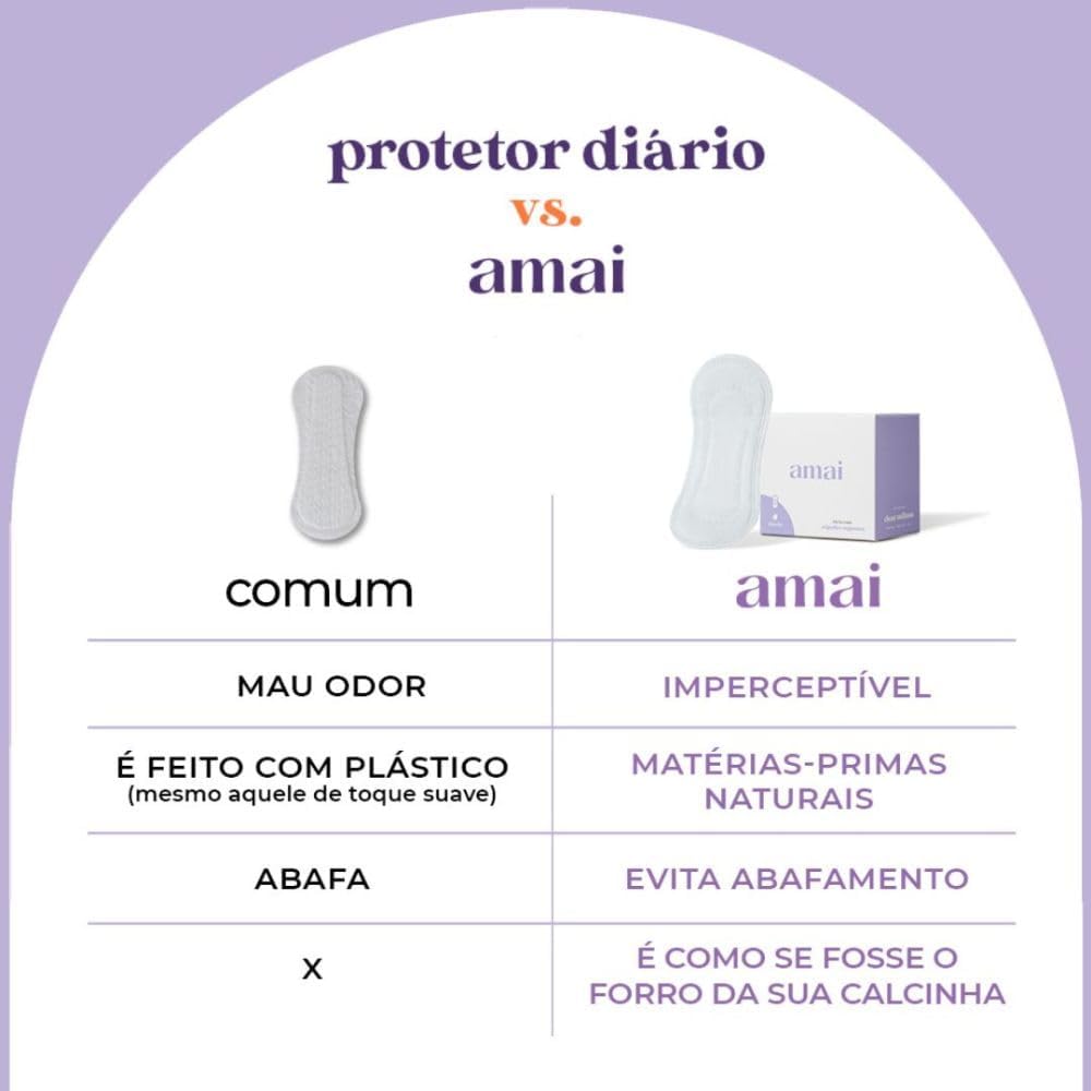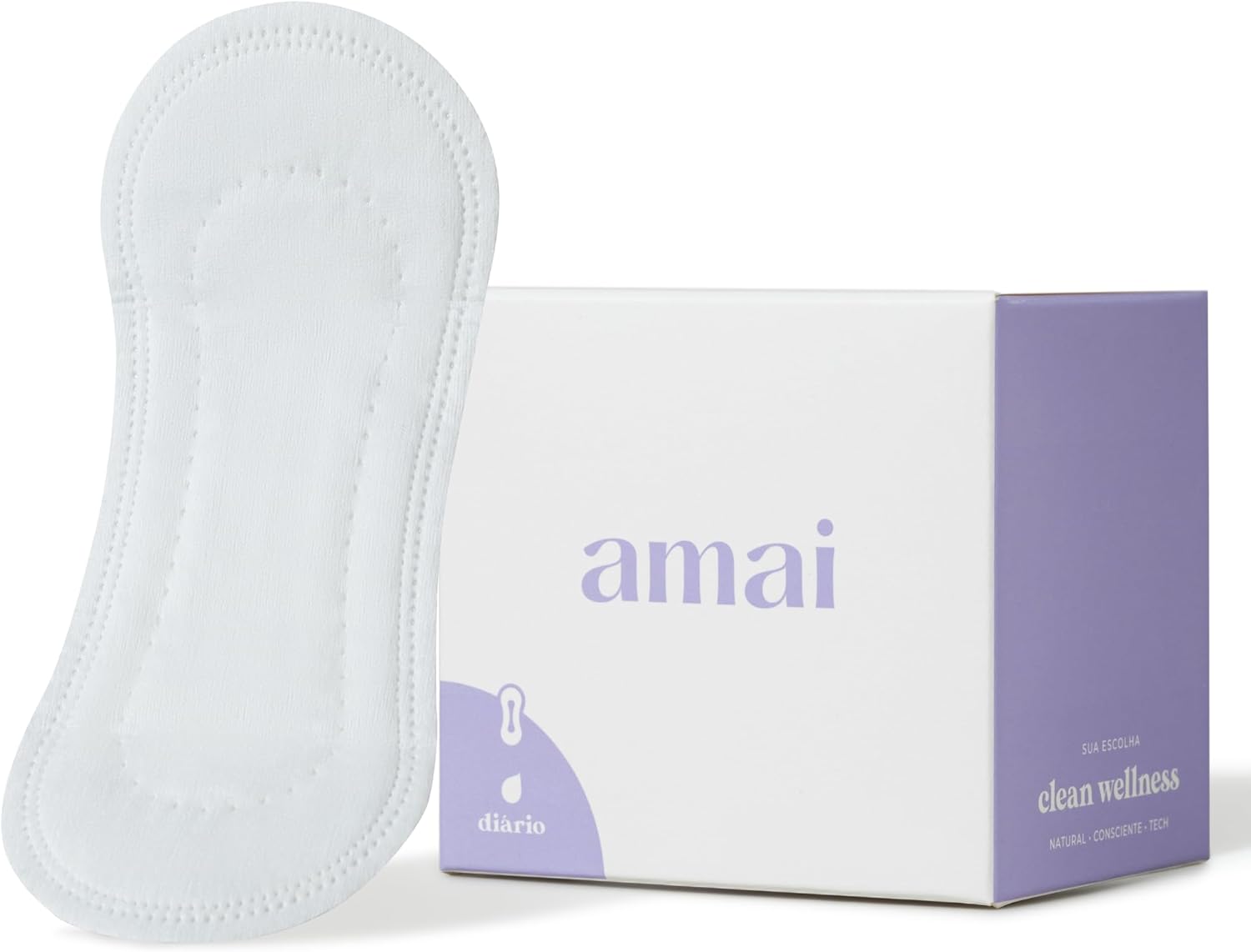 amai, Protetor Diário Ultra Confortável com 100% Algodão – Imperceptível, Livre de Químicos e Zero Plástico – 20 unidades