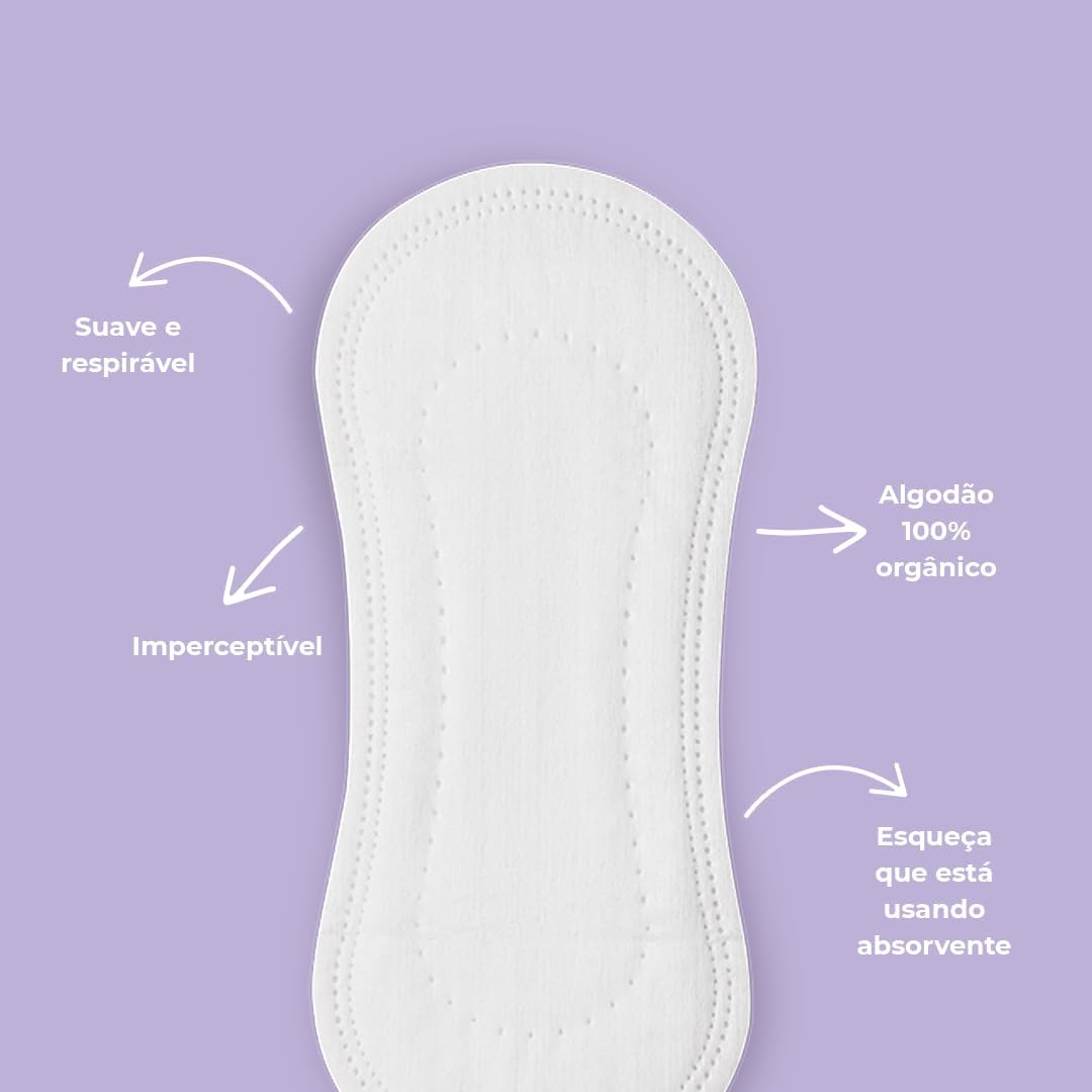É um protetor diário ultra confortável feito com 100% algodão, projetado para segurar pequenas quantidades de sangue e corrimento.