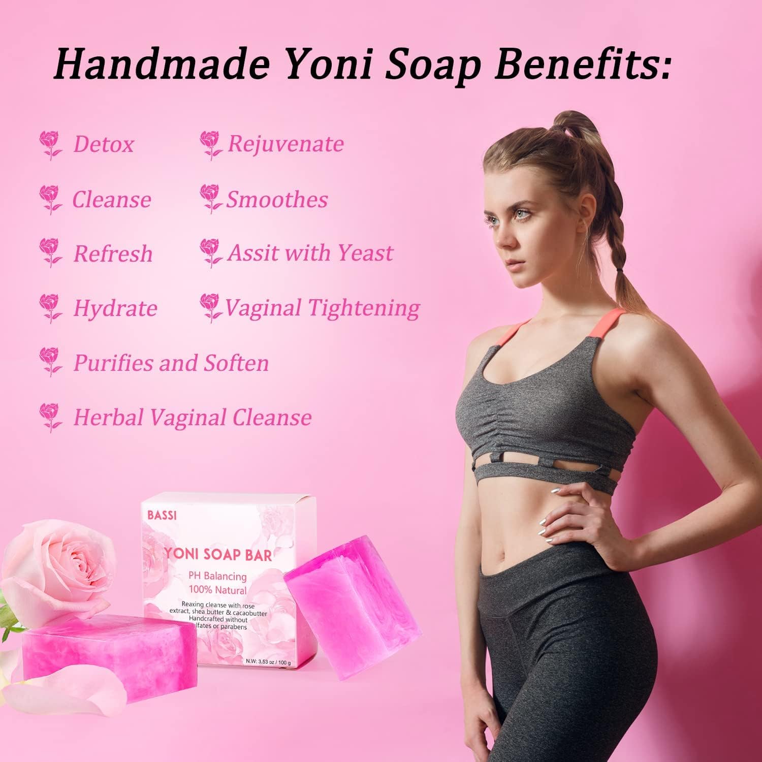 BASSI Sabonete Íntimo Yoni Em Barra, 3 Unidades, 100% Natural E Orgânico, Com Ph Balanceado, Desodorante Íntimo, Sabonete Para Cuidados Íntimos Com Espuma, 100G