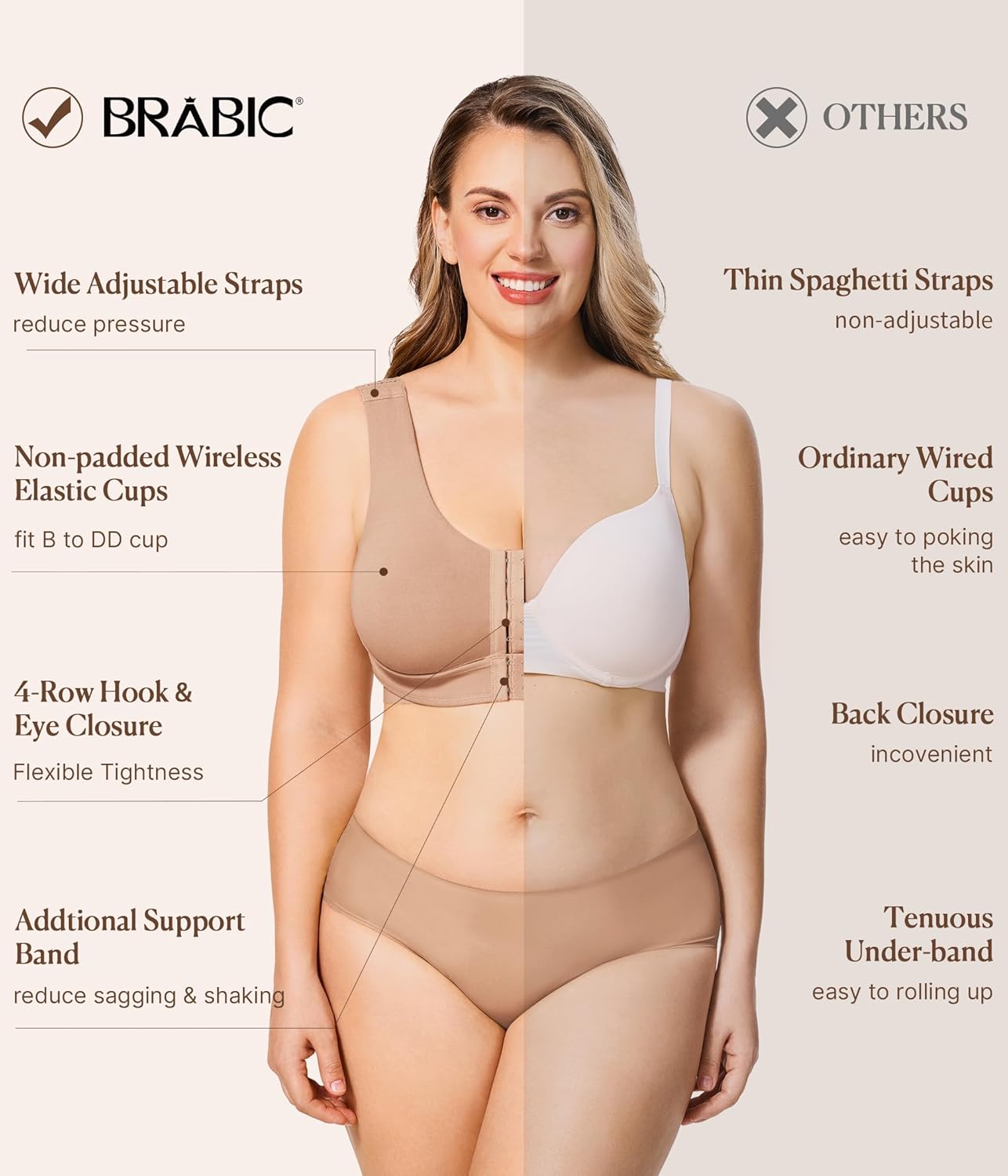 BRABIC Sutiã com fecho frontal para mulheres pós-cirurgia correção mastectomia suporte cirúrgico sem fio cobertura total