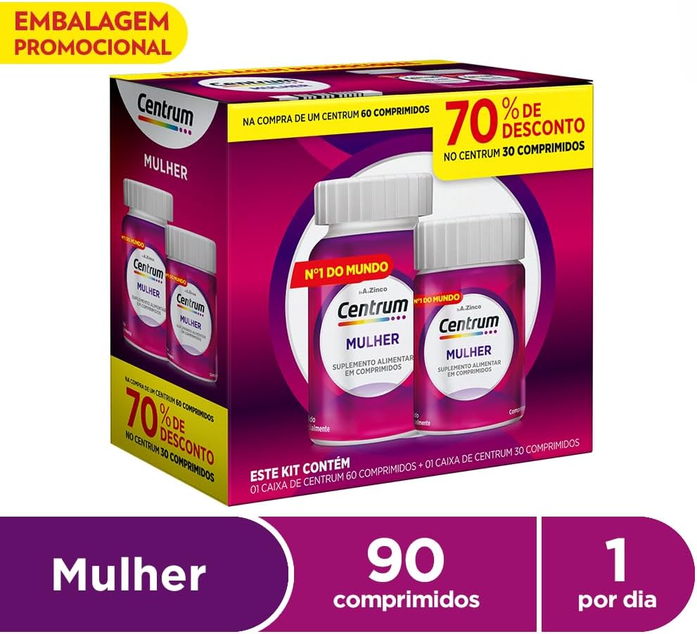 Centrum Mulher Multivitamínico Diário, com Magnésio, Vitamina D e Vitamina B12, Leve 90 Comprimidos e Pague 60