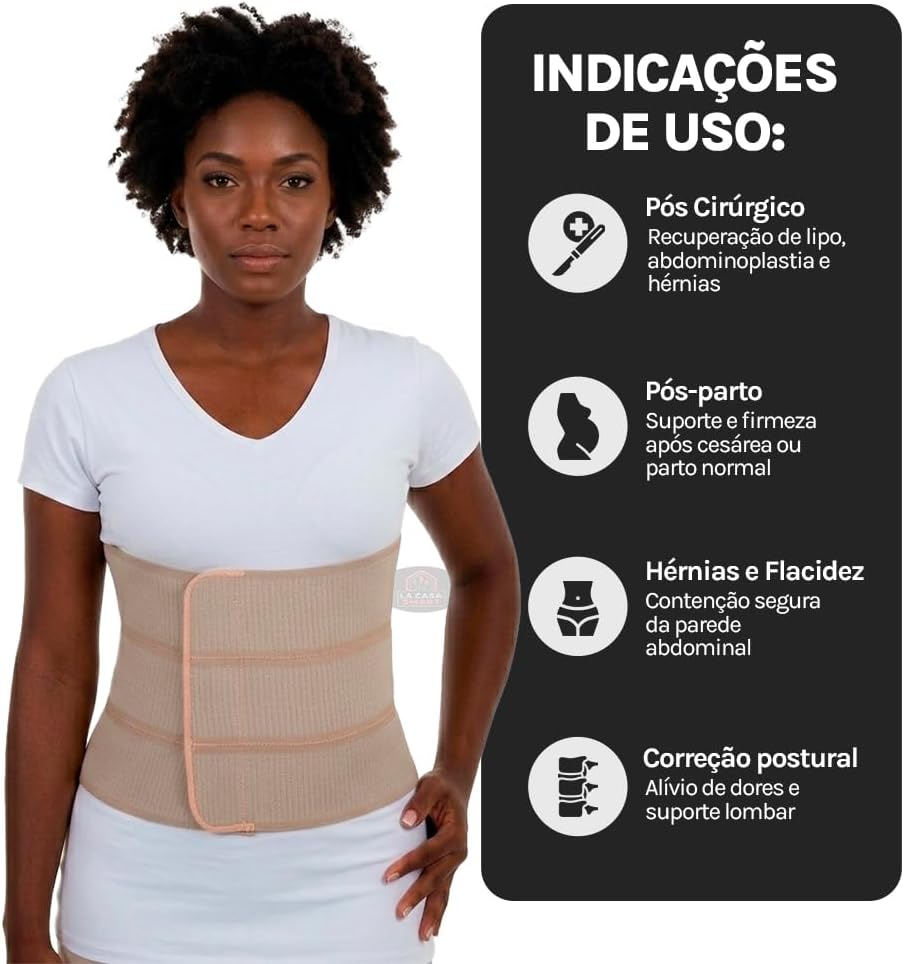 A Cinta Abdominal Elástica 3 Gomos Bege foi projetada para proporcionar suporte durante a recuperação pós-cirúrgica e para estabilização lombar. Com um design que inclui três painéis elásticos, ela se adapta confortavelmente ao corpo, oferecendo segurança e estabilidade. É uma opção unissex, fabricada no Brasil, e é ideal para quem precisa de apoio ortopédico em casos de hérnia ou artrose.