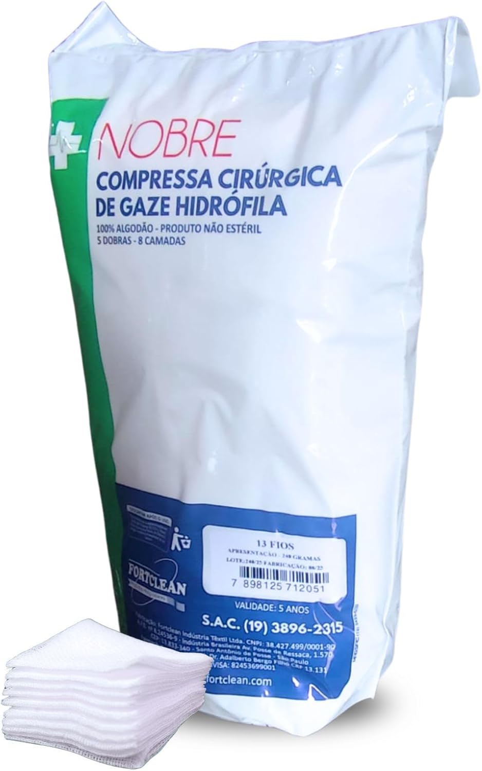 Compressa De Gaze 13 Fios Hidrófila 500 Uni ou 240g