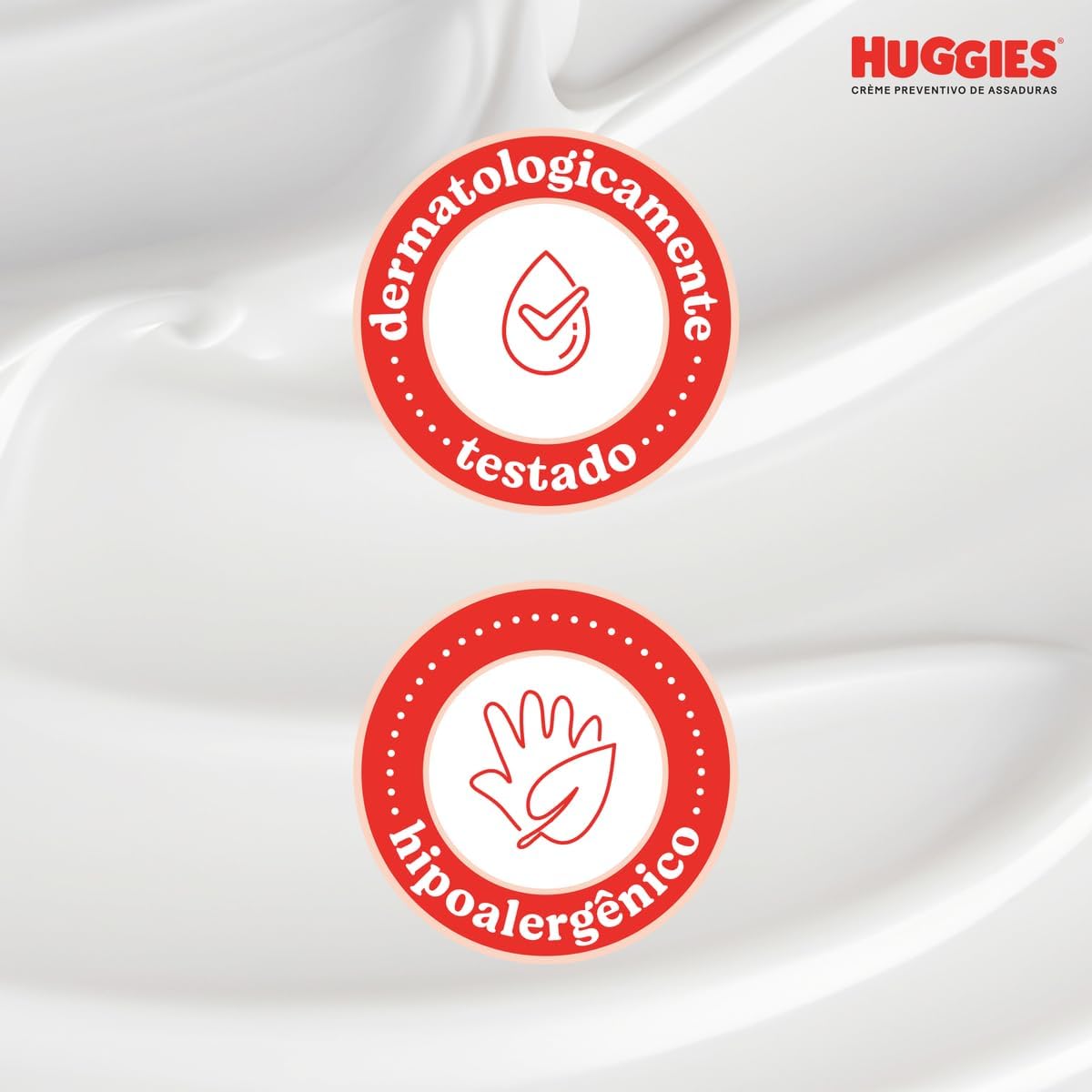 O Creme Preventivo de Assaduras Huggies foi desenvolvido para proteger a pele do bebê contra assaduras, formando uma barreira protetora.