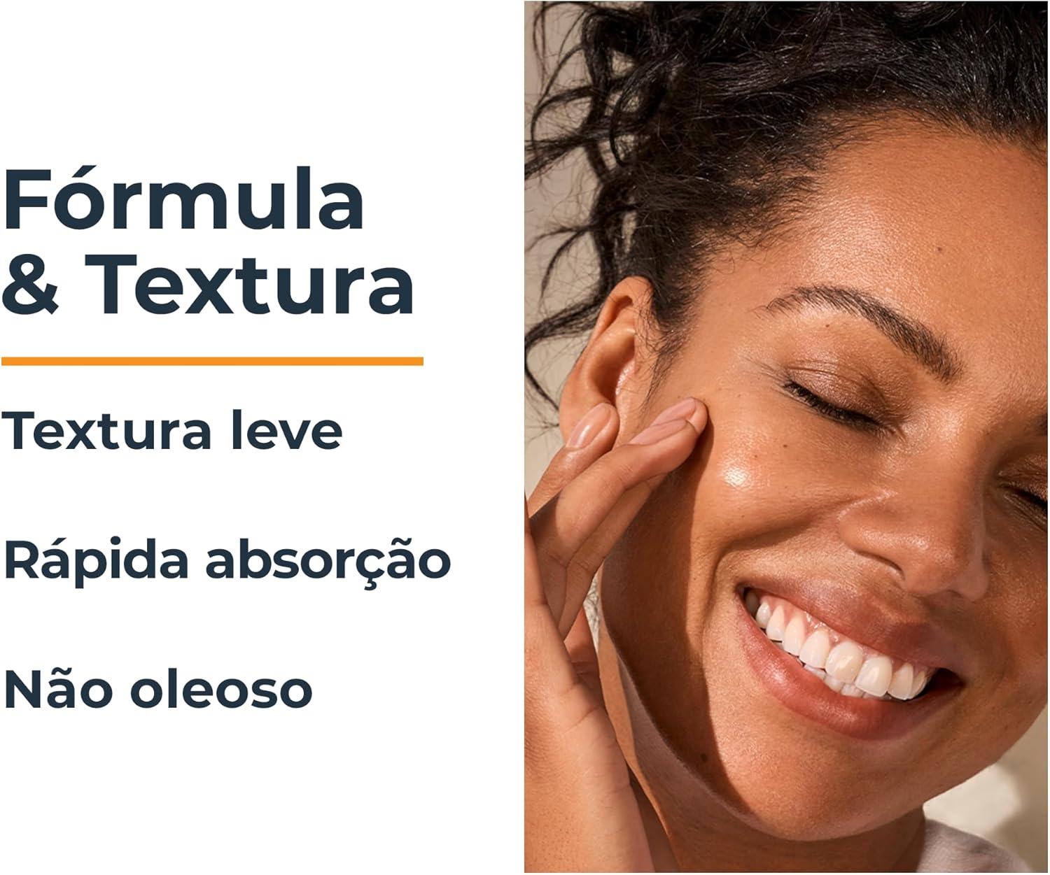 O protetor solar deve ser aplicado generosamente no rosto e pescoço 30 minutos antes da exposição ao sol e reaplicado a cada 2 horas ou após nadar ou suar.