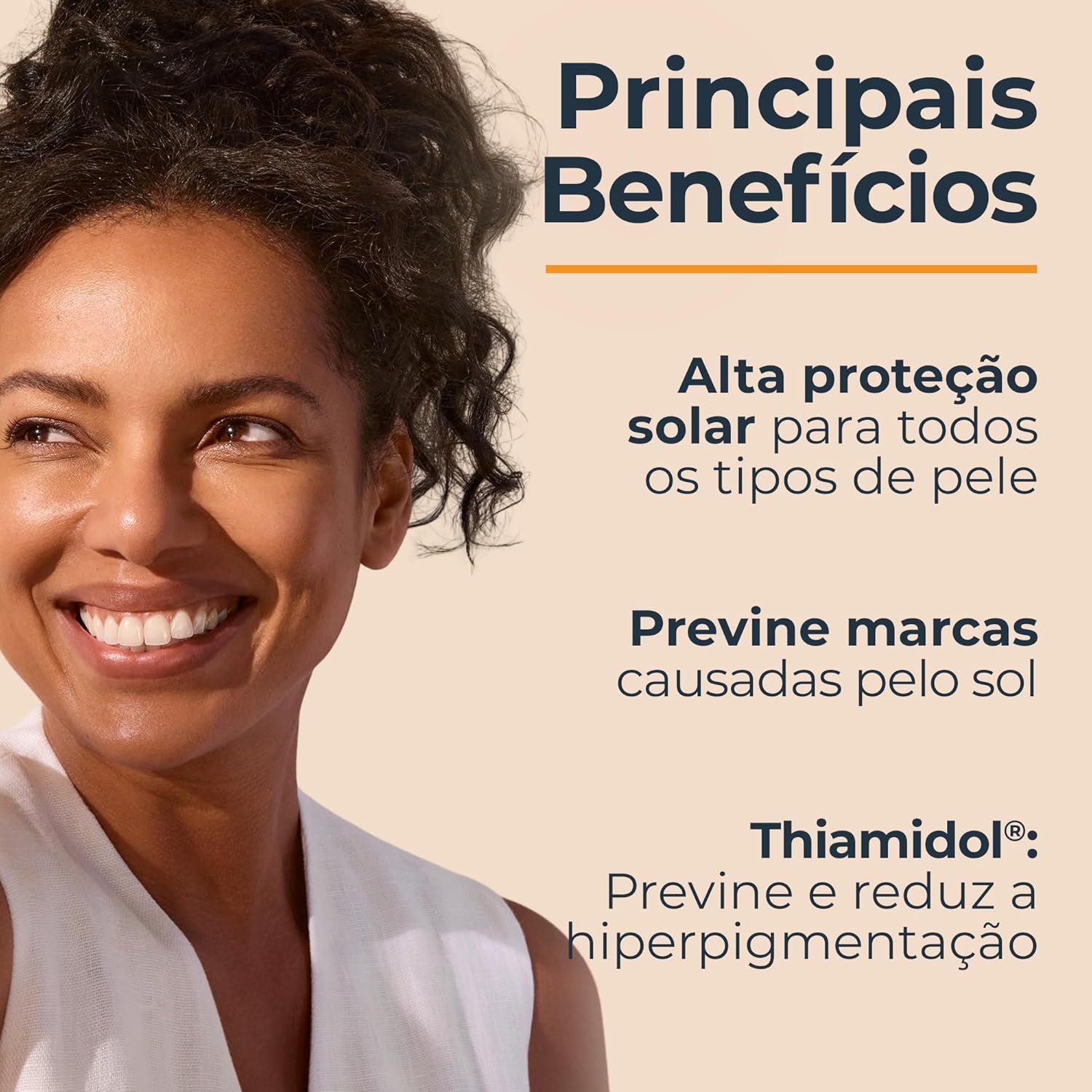 O EUCERIN Protetor Solar Facial Antimanchas FPS 60 é uma excelente opção para quem busca proteção eficaz contra os danos causados pelo sol. Com uma fórmula que inclui Thiamidol, ele ajuda a clarear manchas na pele, proporcionando um tom mais uniforme. Além disso, oferece proteção contra raios UVA, UVB e luz visível, essencial para a saúde da pele.
