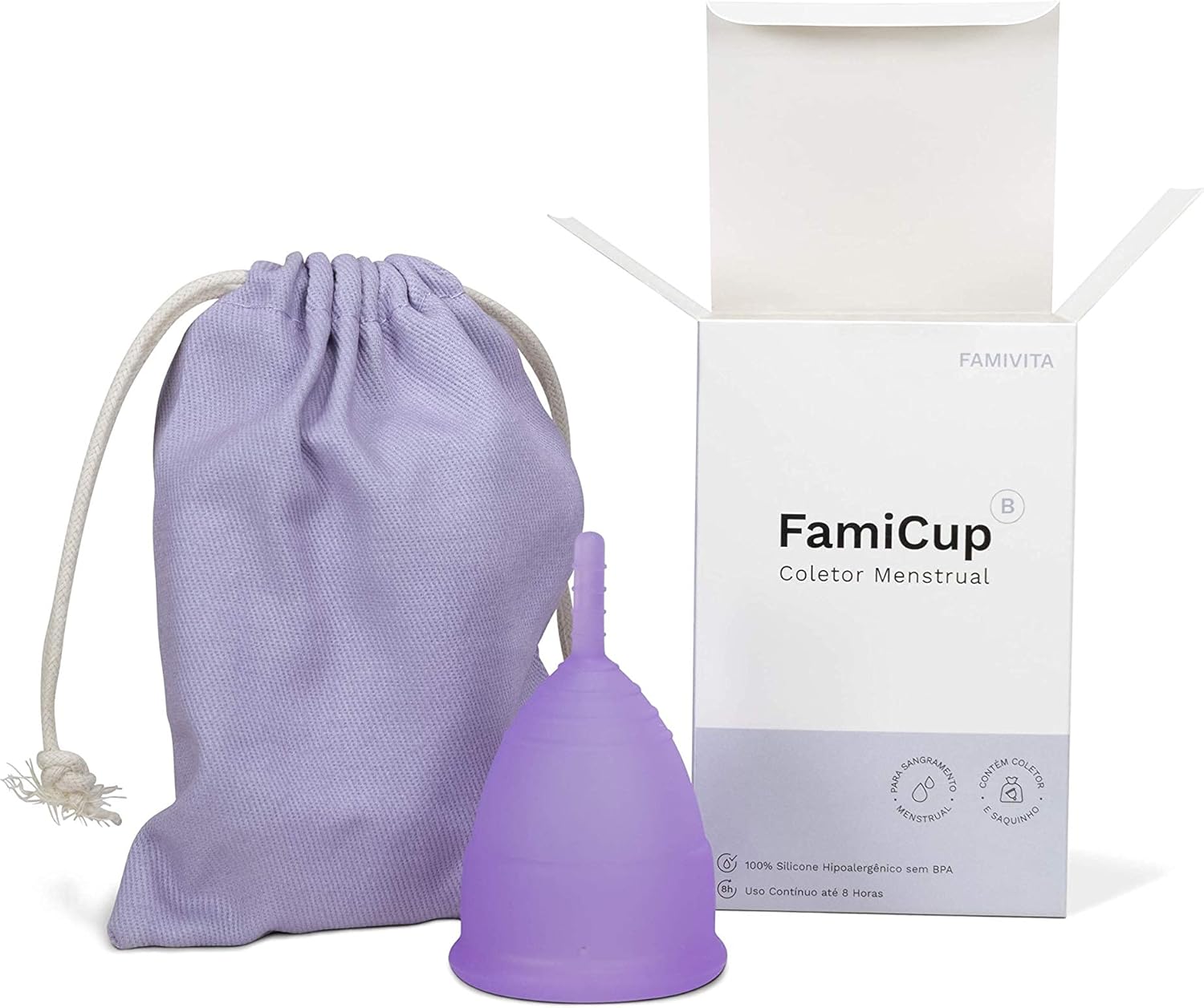 O FamiCup é um coletor menstrual reutilizável, feito de silicone medicinal 100% hipoalergênico, ideal para mulheres que buscam conforto e segurança durante o ciclo menstrual. Ele é uma alternativa econômica e ecológica aos absorventes tradicionais, pois pode ser usado do primeiro ao último dia da menstruação. O produto vem acompanhado de um saquinho de algodão para armazenamento.