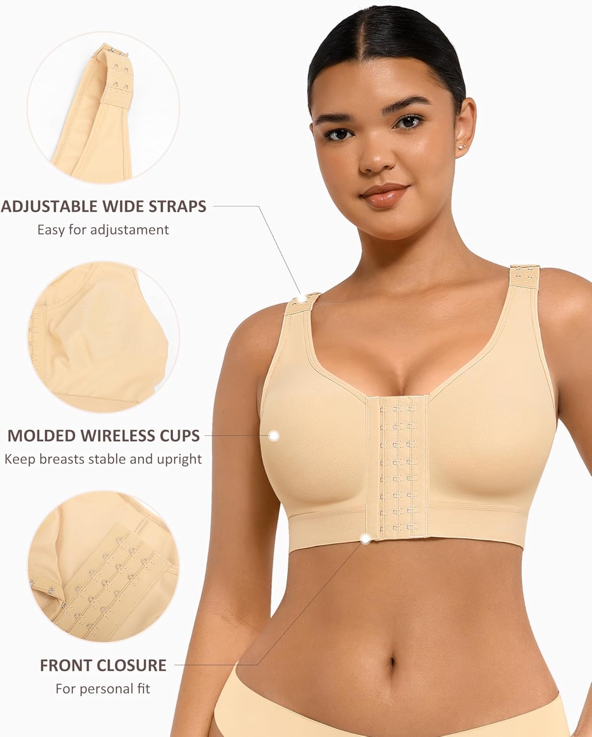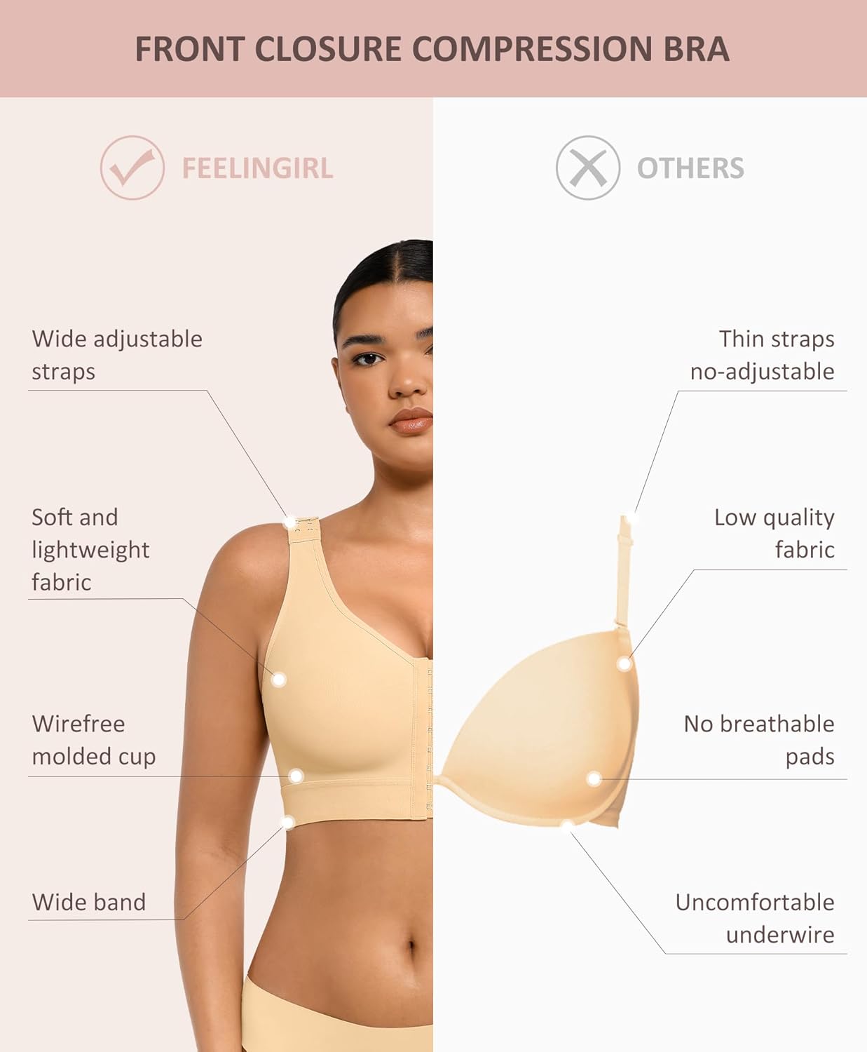 FeelinGirl Sutiã de mastectomia para mulheres prótese de pós-cirurgia fechamento frontal recuperação cirúrgica diária