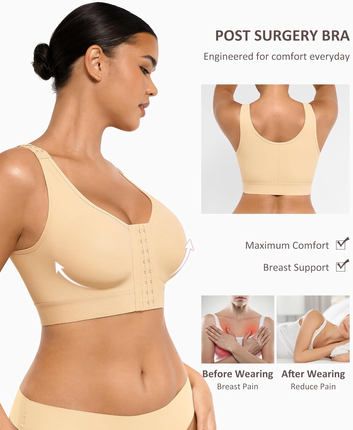 Sutiã projetado para oferecer conforto durante a recuperação diária.