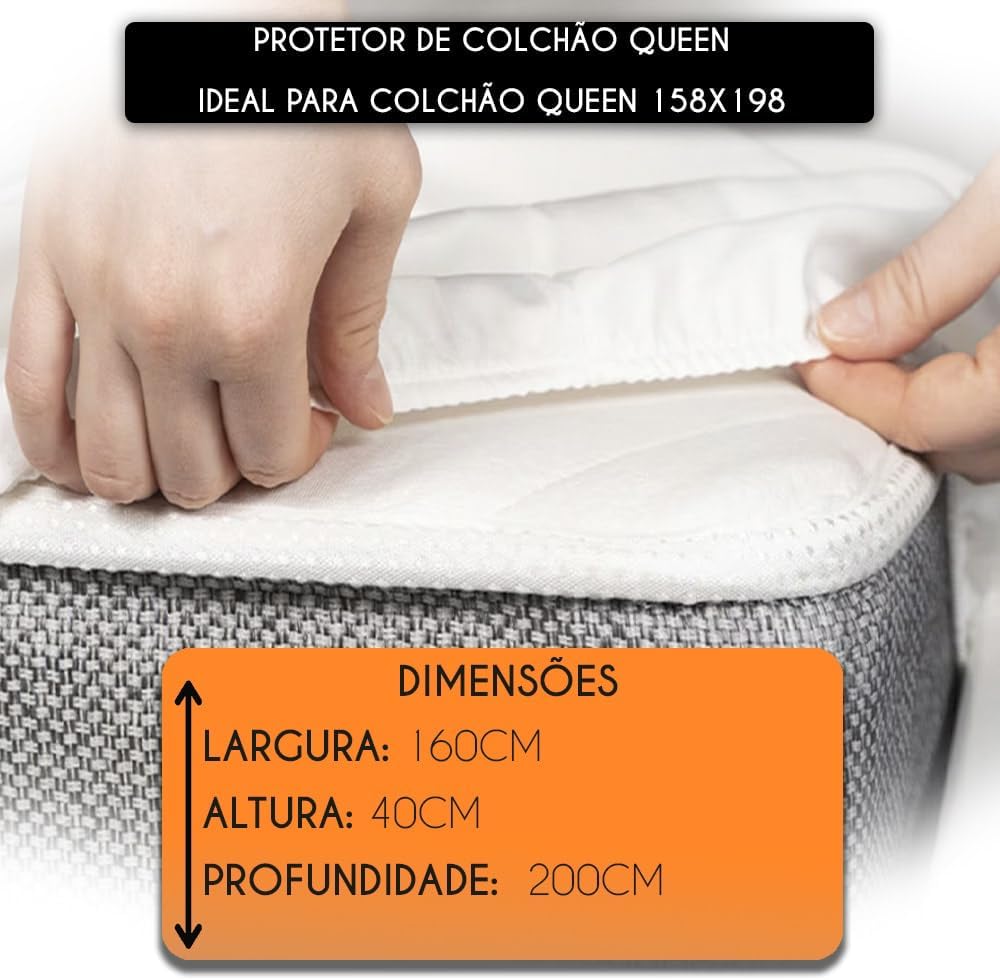 O tamanho do protetor é Queen, medindo 160 x 200 cm.