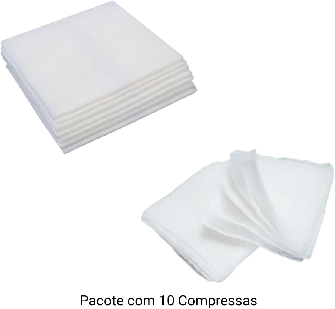 Cada pacote contém 10 unidades da Compressa de Gaze Estéril.