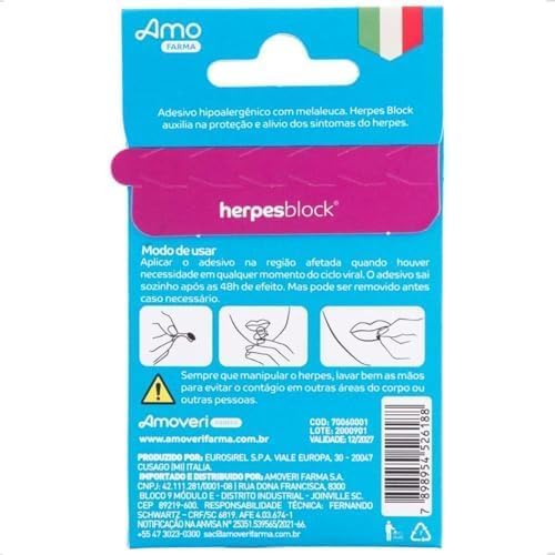 Os Adesivos Naturais para Herpes Labial com Melaleuca oferecem uma solução prática e discreta para o tratamento de herpes labial. Com uma película ultrafina e transparente, eles criam uma barreira protetora sobre a lesão, ajudando a aliviar o desconforto e acelerar a recuperação da pele. Este produto é dermatologicamente testado e livre de parabenos e Bisfenol-A (BPA). Além disso, é indicado para uso diário, permitindo que você mantenha sua rotina sem preocupações.