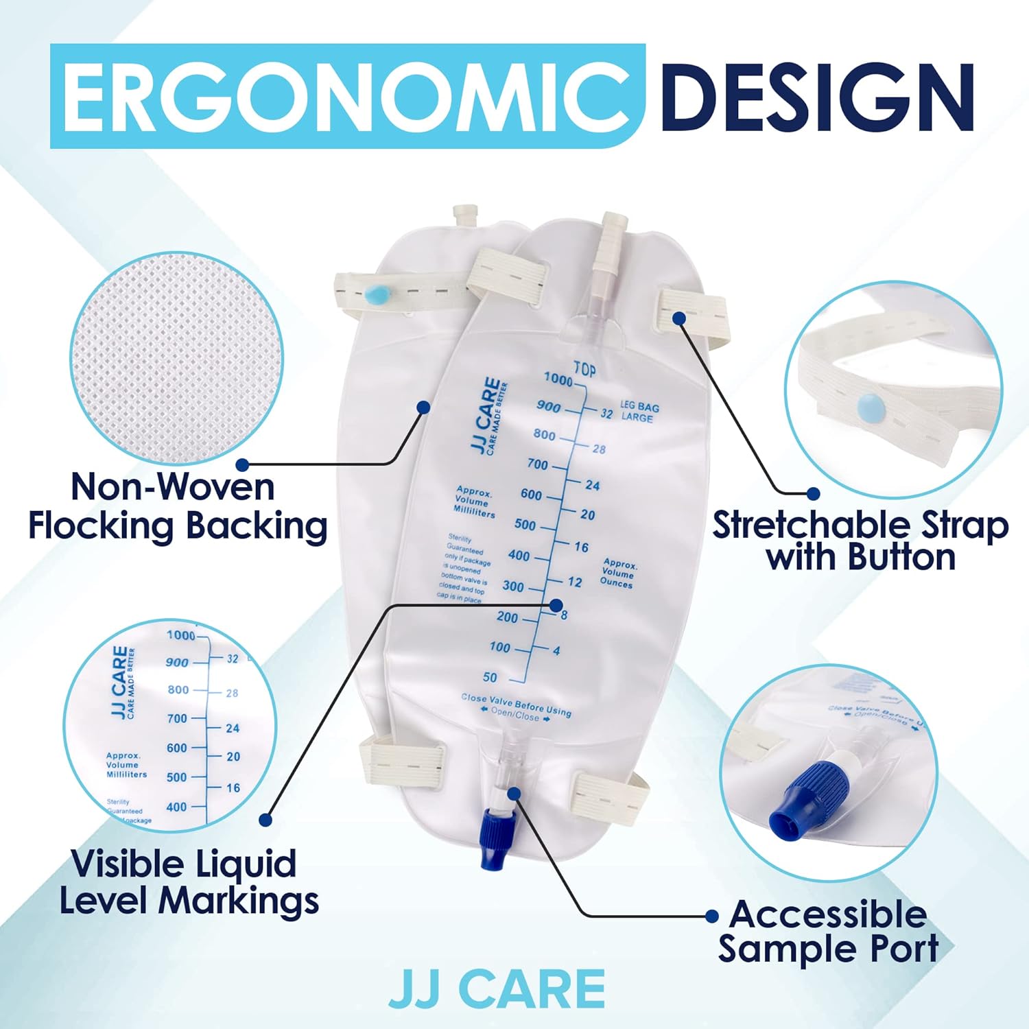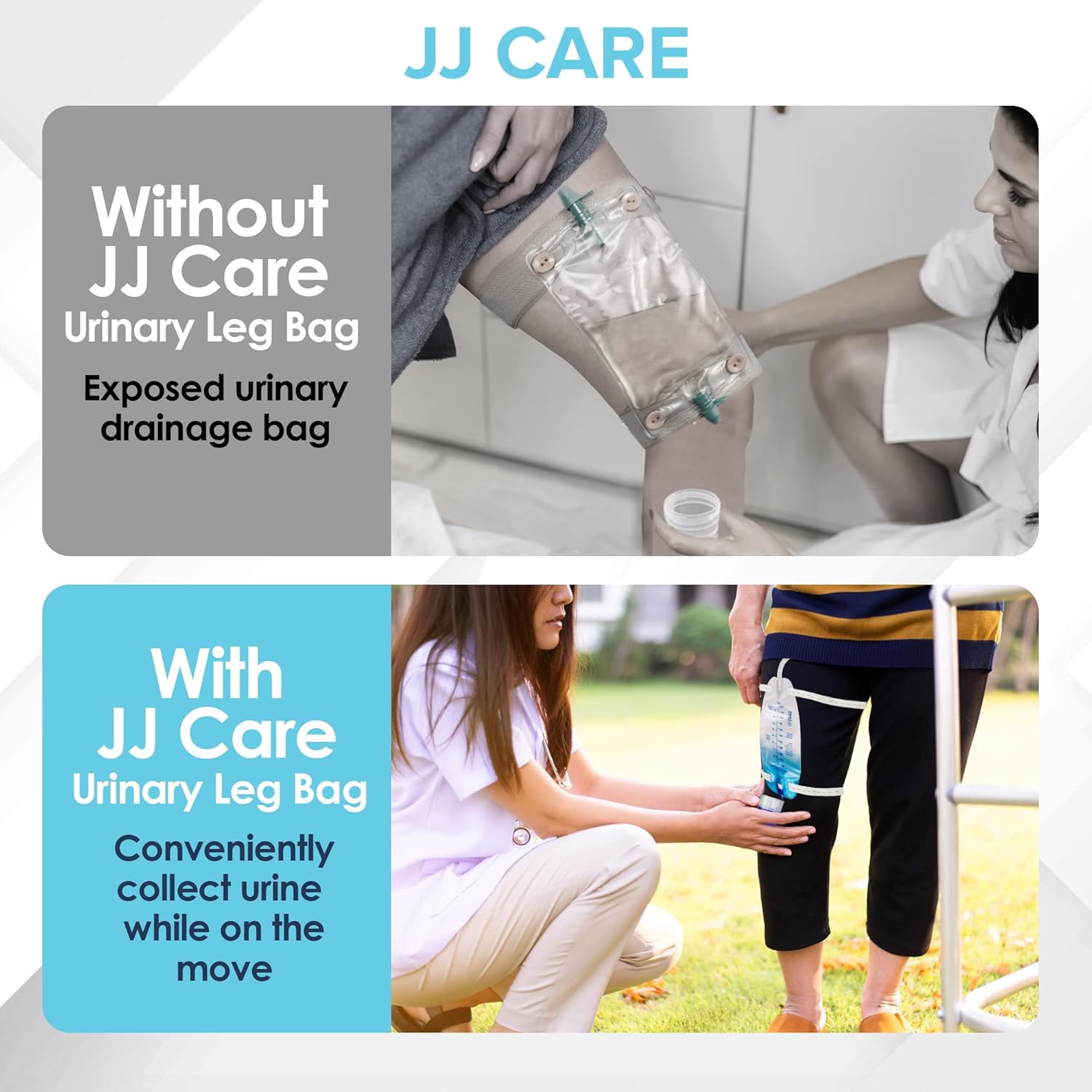 JJ CARE Bolsa de perna para drenagem urinária – Pacote com 3 bolsas de perna para cateter, bolsas individuais para cateter Foley antirefluxo com capacidade de 1000 ml para homens com tubo de drenagem