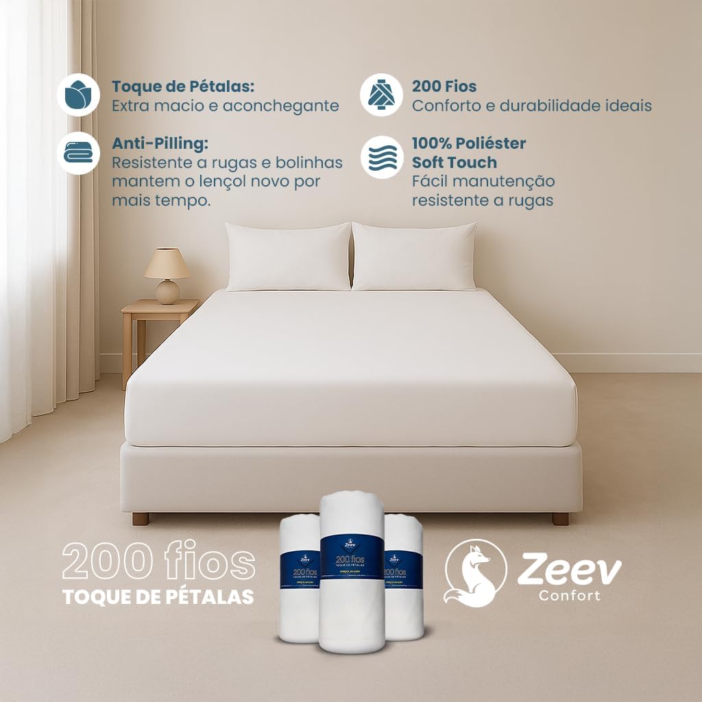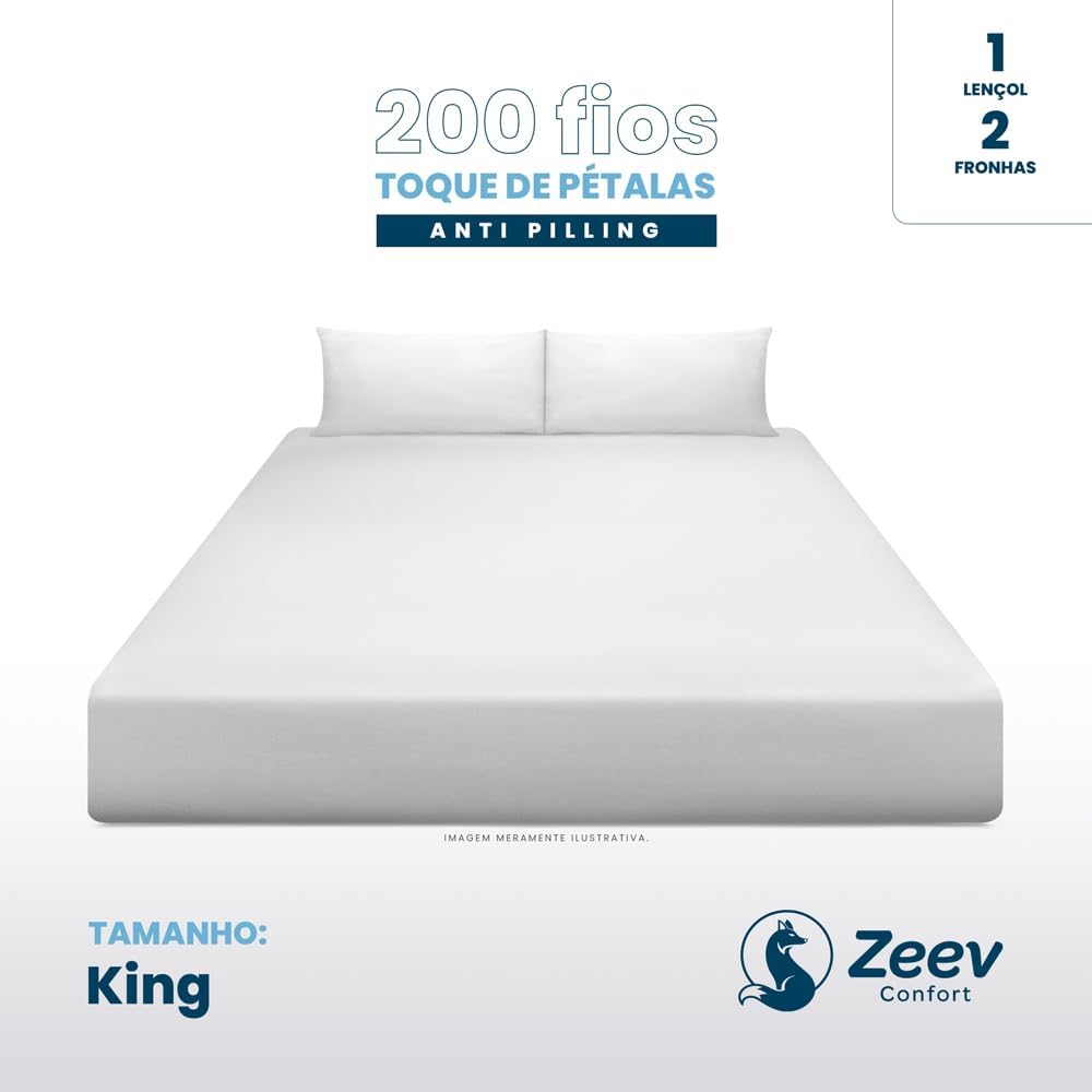 Jogo de lençol 200 fios 3 peças toque de cetim King – Zeev Confort