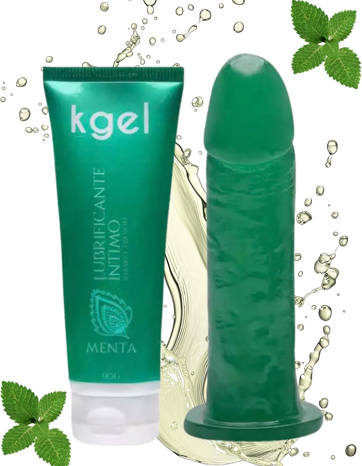 KGEL Kit Lubrificante Íntimo 80g com Prótese Peniana Maciça Aromática, Menta