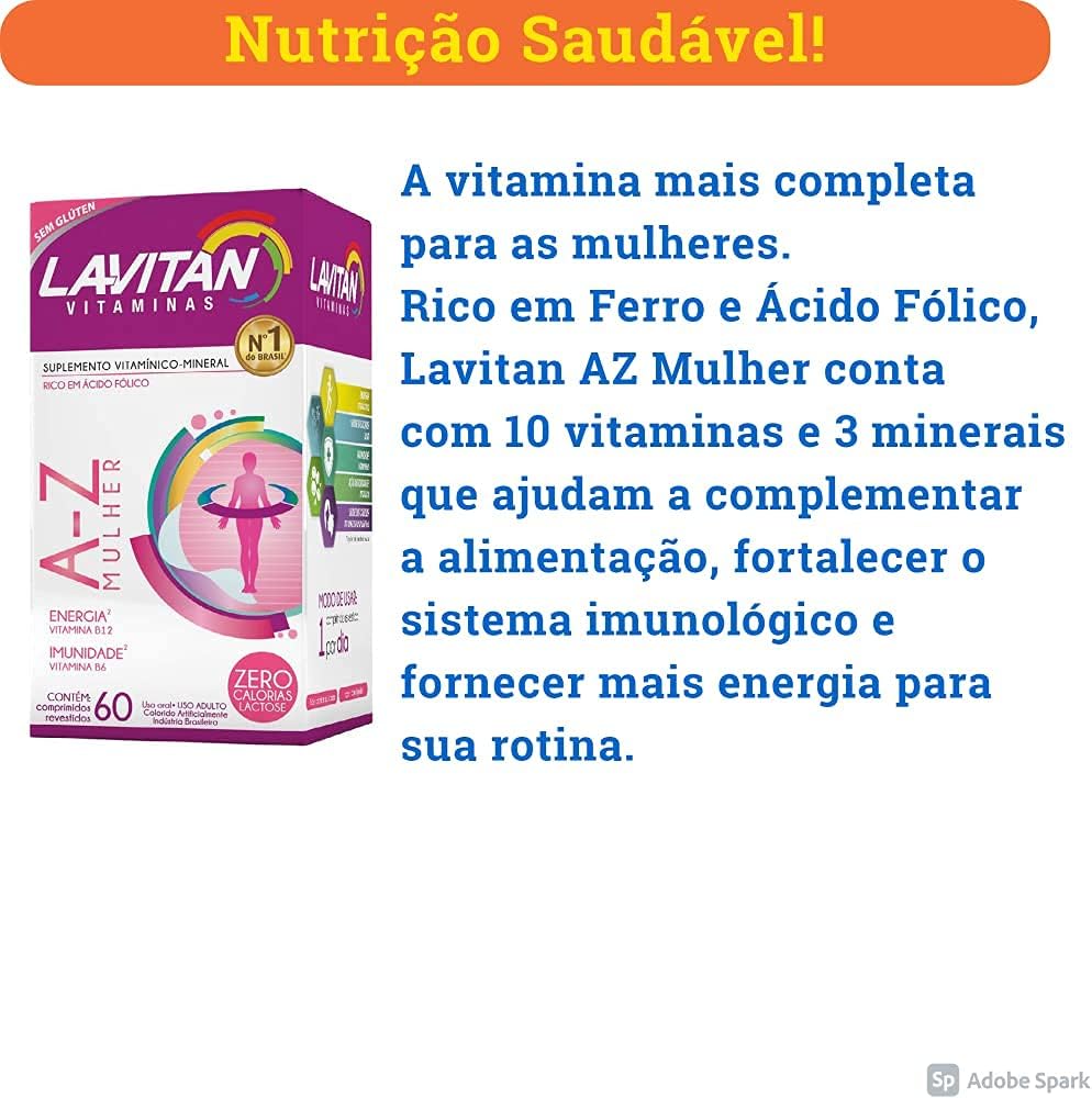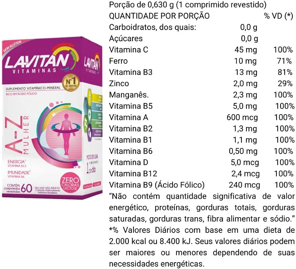 O Kit 03 Lavitan AZ Mulher 60 Comprimidos é uma opção prática e nutritiva para mulheres que buscam complementar sua alimentação. Este suplemento é rico em Ferro e Ácido Fólico, além de conter 10 vitaminas e 3 minerais essenciais. Com uma fórmula que ajuda a fortalecer o sistema imunológico e fornece energia para o dia a dia, é ideal para quem tem uma rotina agitada.
