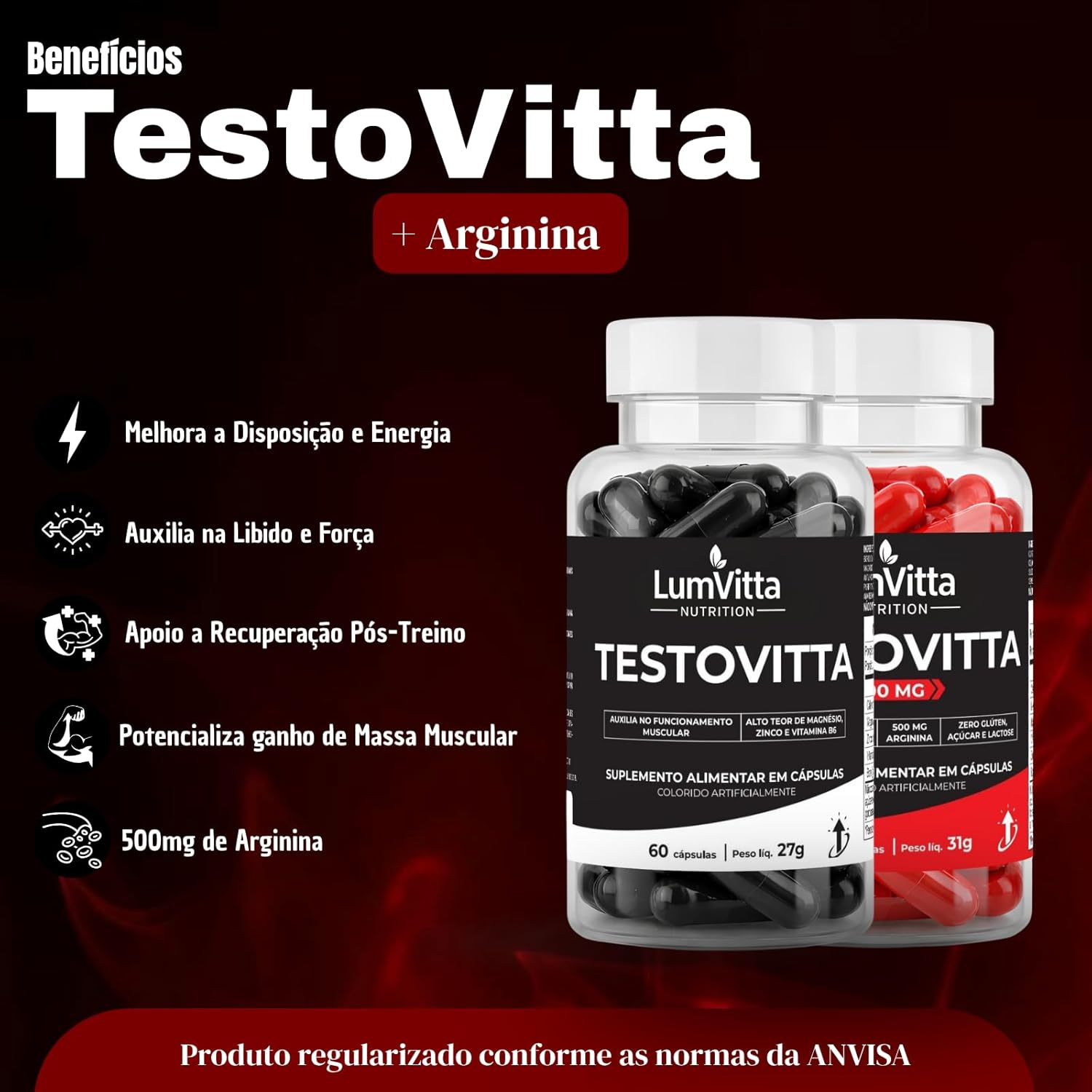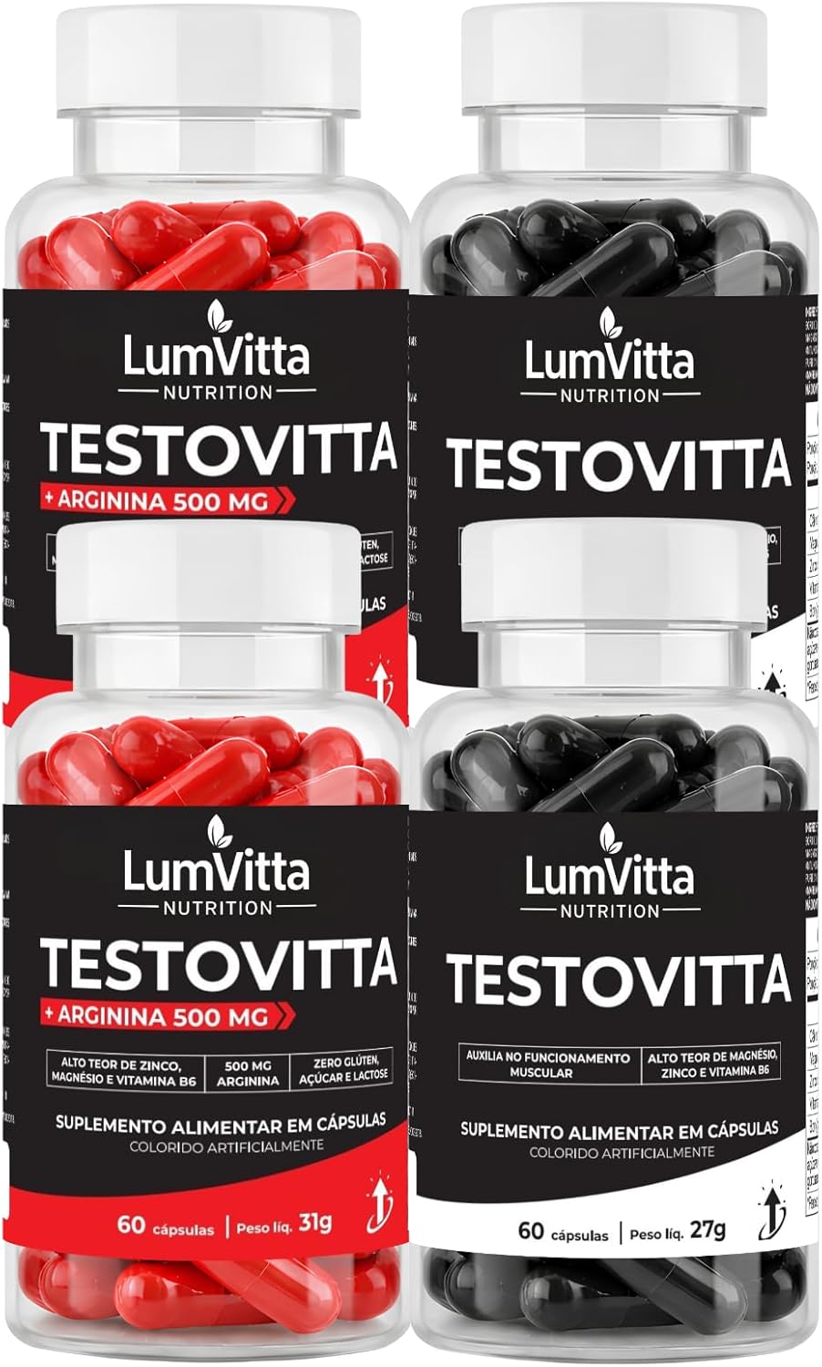 Kit 2x Testo TestoVitta Vitaminas Minerais 60 Cáps + 2x TestoVitta + Arginina 500mg 60 Cáps Masculino Feminino Performance Vitalidade e Equilíbrio Hormonal Matéria Prima Premium