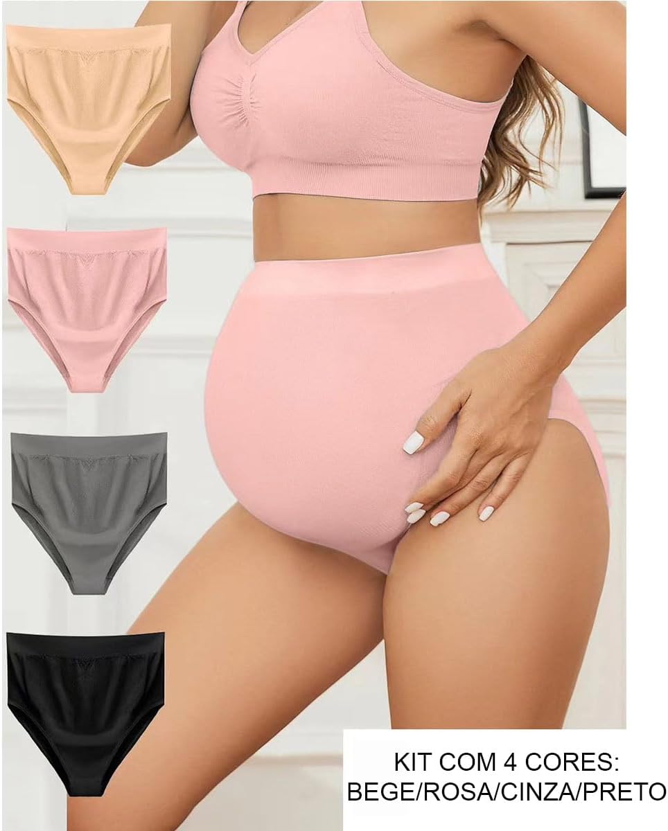 Kit 4 Calcinha Gestante Alta Pós-parto Hot Pants Maternidade Conforto