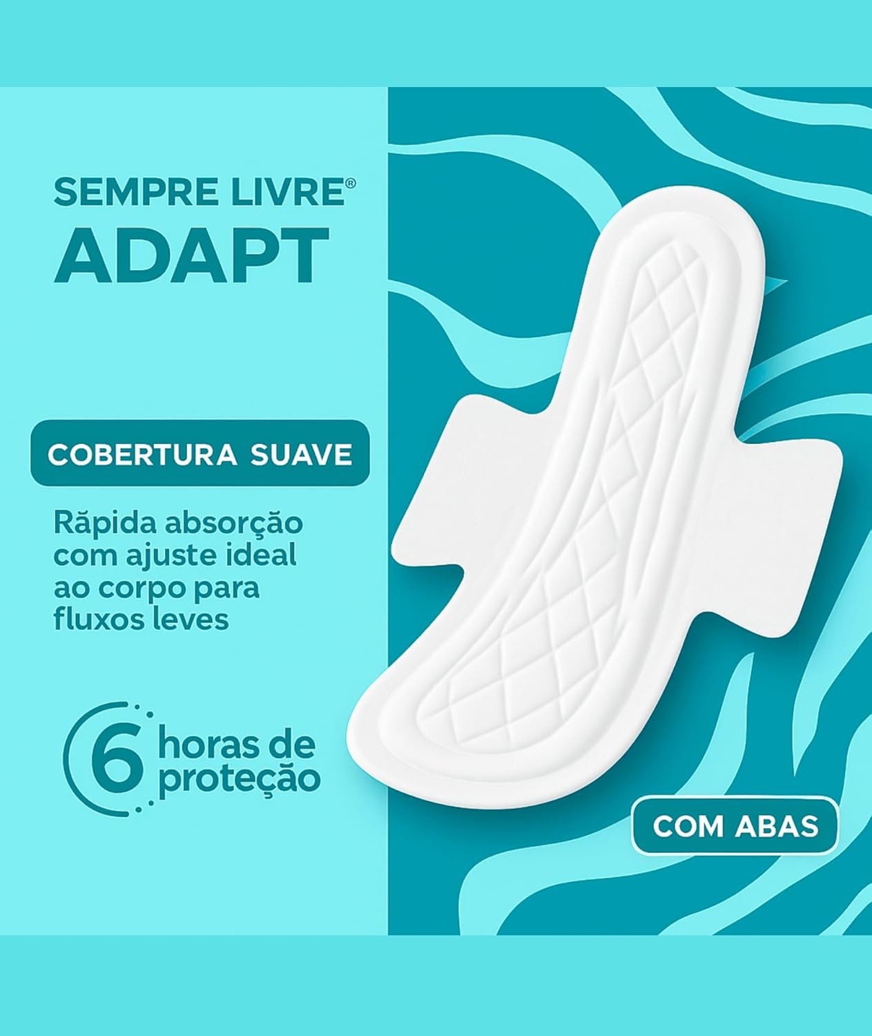 O Kit Econômico com 4 Embalagens de Absorvente Sempre Livre Adapt Suave oferece uma solução prática e confortável para a higiene feminina. Com 32 unidades no total, este kit é ideal para quem busca proteção contínua. As características incluem: