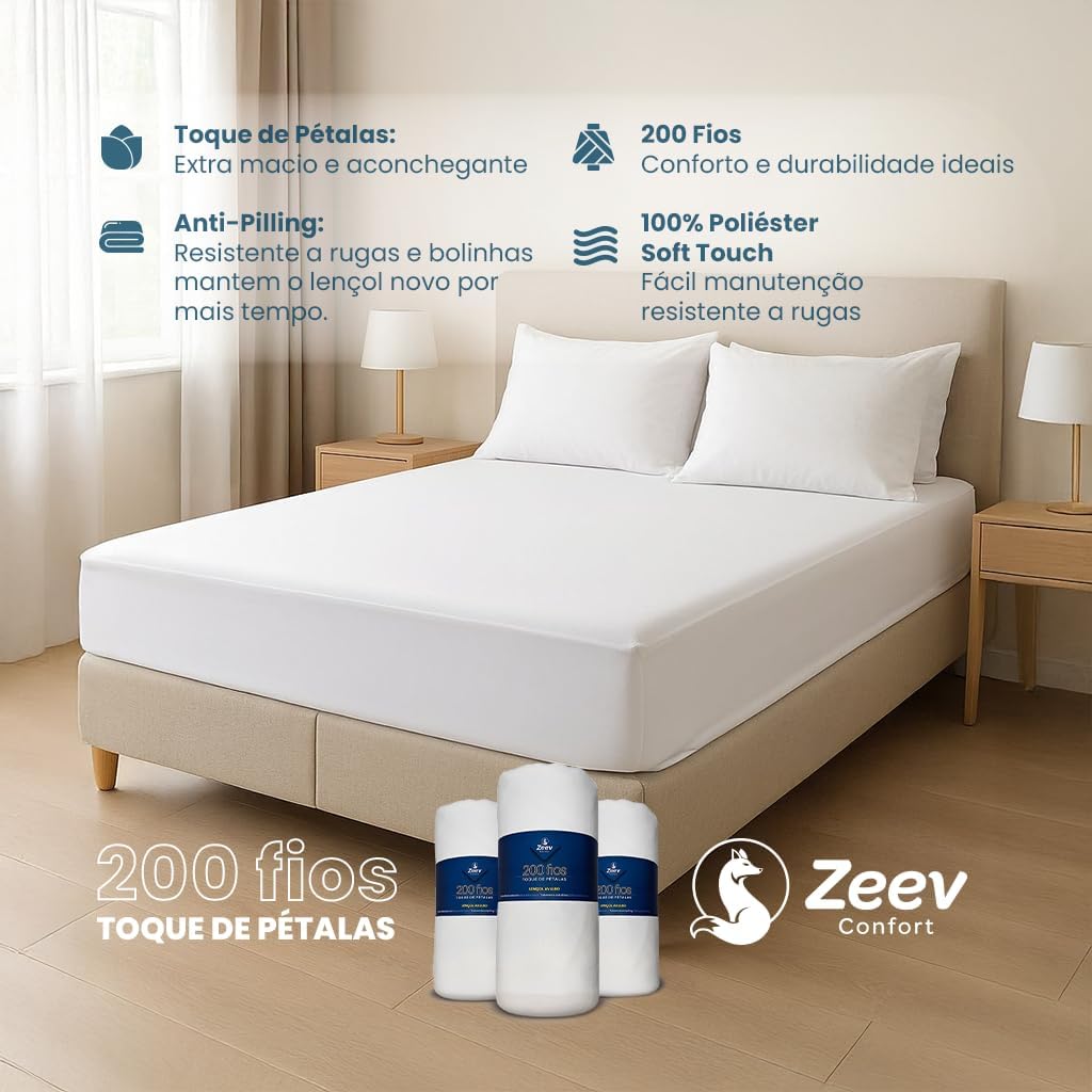 Lençol King 200 Fios toque de poliéster Anti-Pilling – Zeev Confort