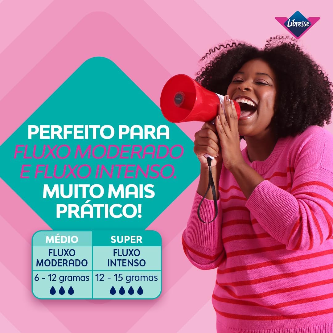 • Absorção de 12 a 15 gramas para fluxo intenso