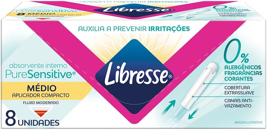 Os absorventes internos Libresse Pure Sensitive são projetados para oferecer conforto e proteção durante o ciclo menstrual. Com um aplicador compacto, eles são fáceis de usar e se adaptam ao corpo, proporcionando uma experiência discreta e segura. A linha Pure Sensitive é especialmente formulada para ser suave e delicada, prevenindo irritações com 0% de alérgenos, fragrâncias e corantes. Além disso, sua estrutura anatômica garante uma inserção confortável e uma absorção eficaz. Os canais internos ajudam a distribuir o fluxo menstrual de forma eficiente, evitando vazamentos e garantindo a máxima proteção.
