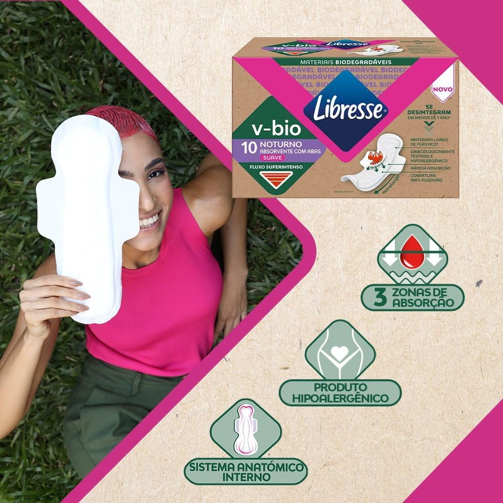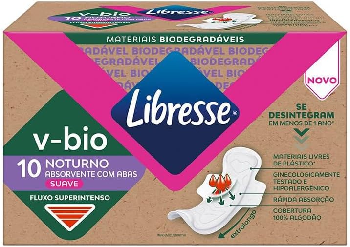 Libresse V-Bio, Absorvente Noturno, com abas, 10 unidades