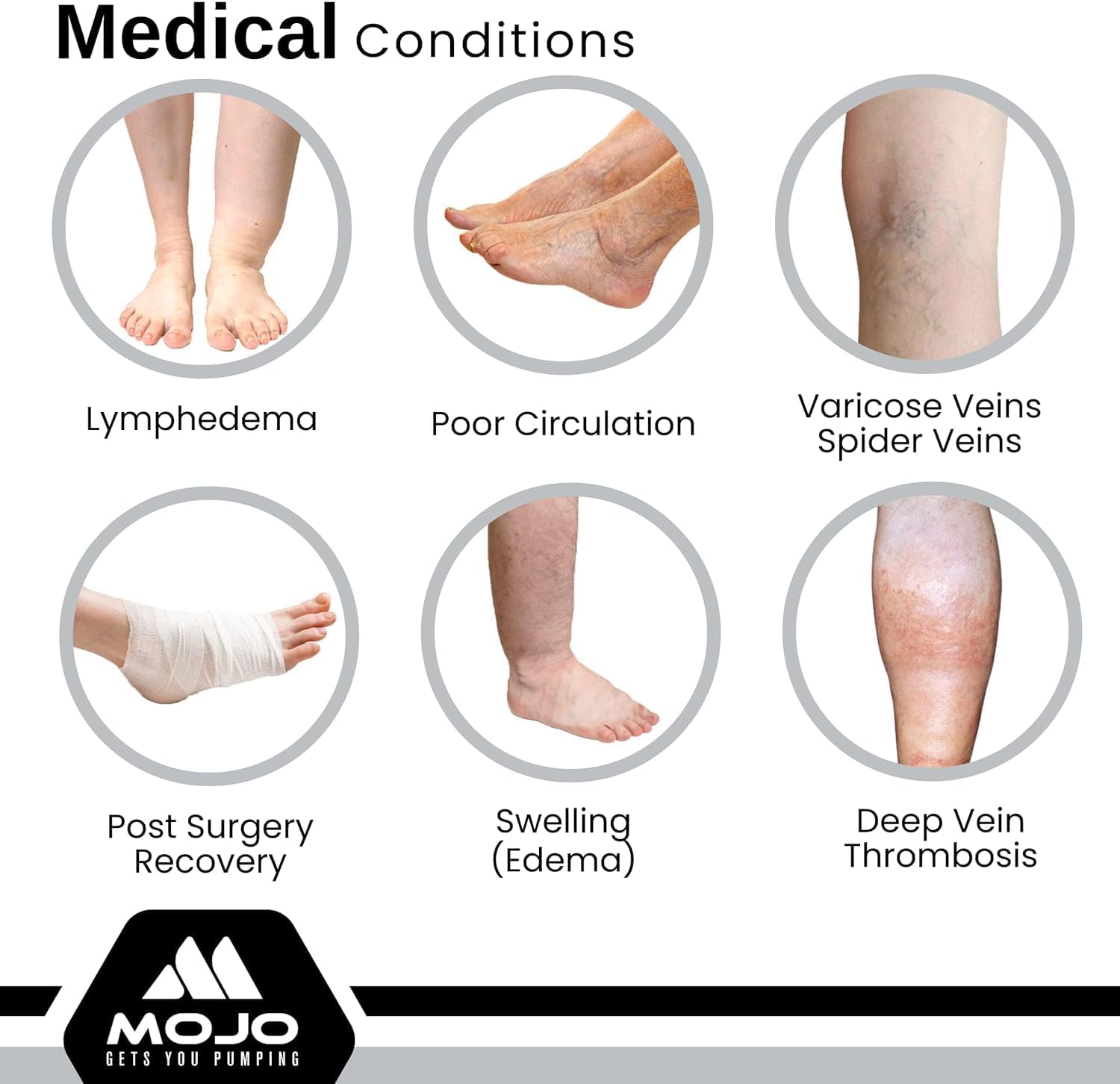 Essas meias são indicadas para quem sofre de varizes, linfedema e outras condições relacionadas à circulação. Usar as Meias de Compressão Mojo regularmente pode contribuir para a saúde geral das pernas.