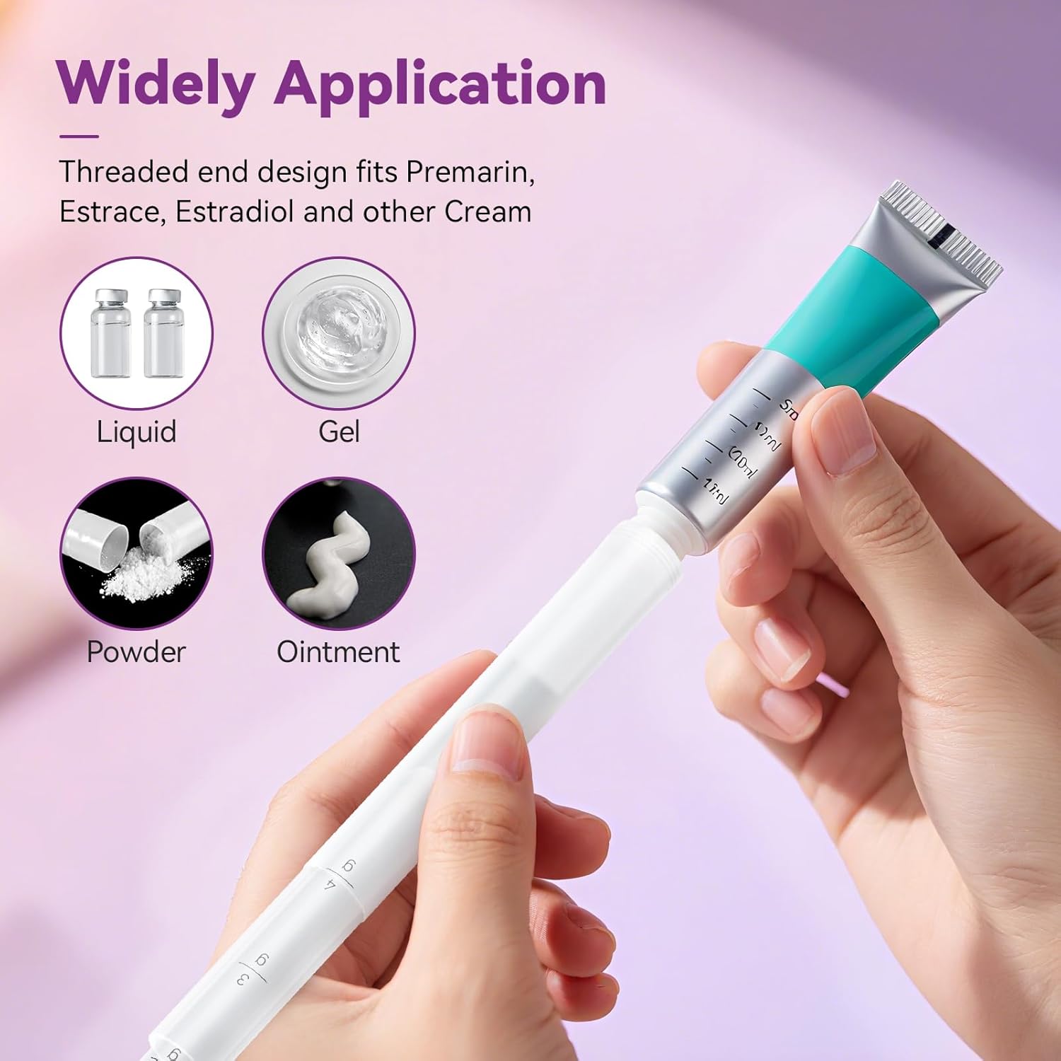 Momsnug Aplicadores Descartáveis para Creme Vaginal, Aplicador de Gel Vaginal com Marcações de Dosagem, Injetor Higiênico com Rosca Compatível com Premarin, Estrace, Preseed e A Maioria Dos Géis
