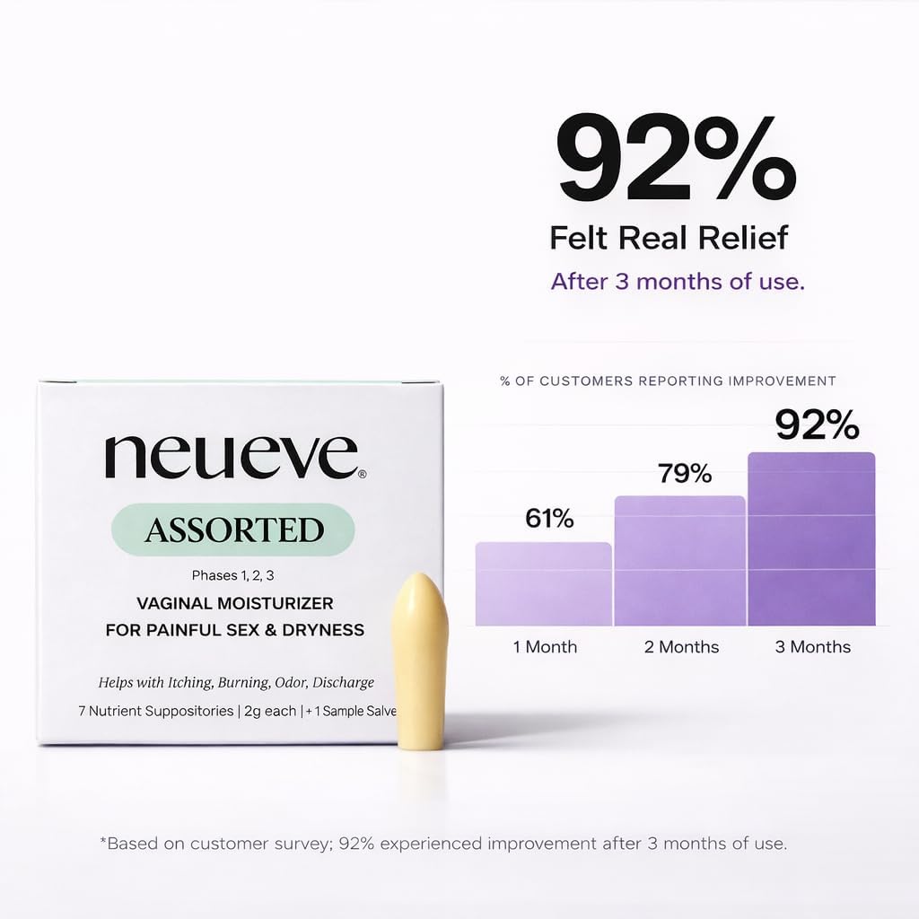 O NeuEve Kit Variado de Hidratantes Vaginais oferece uma solução natural para a hidratação e controle de odor íntimo. Com uma fórmula patenteada, os hidratantes são feitos de ingredientes totalmente naturais e de grau alimentar, proporcionando efeitos que duram até 7 dias. Este kit contém: