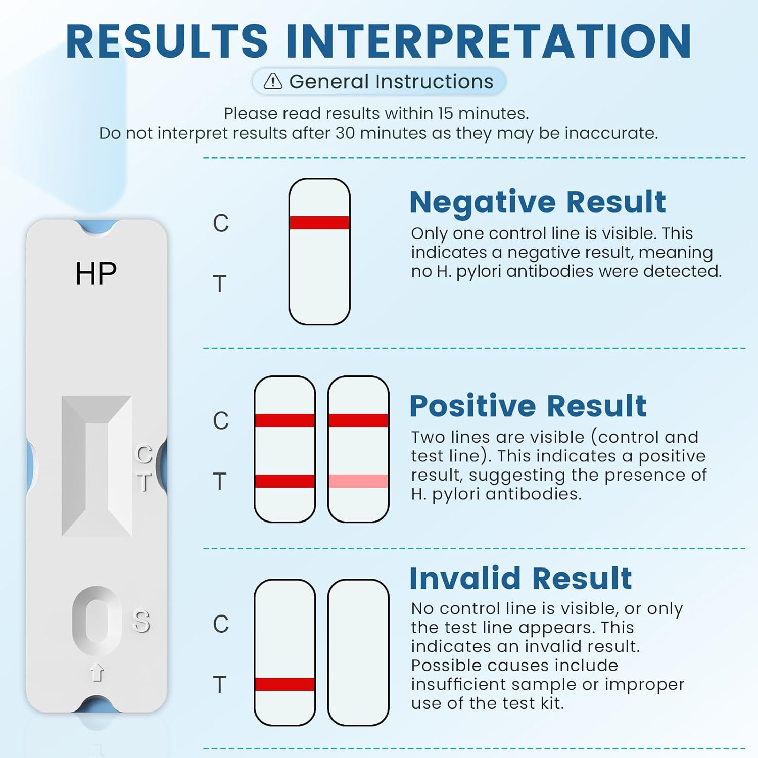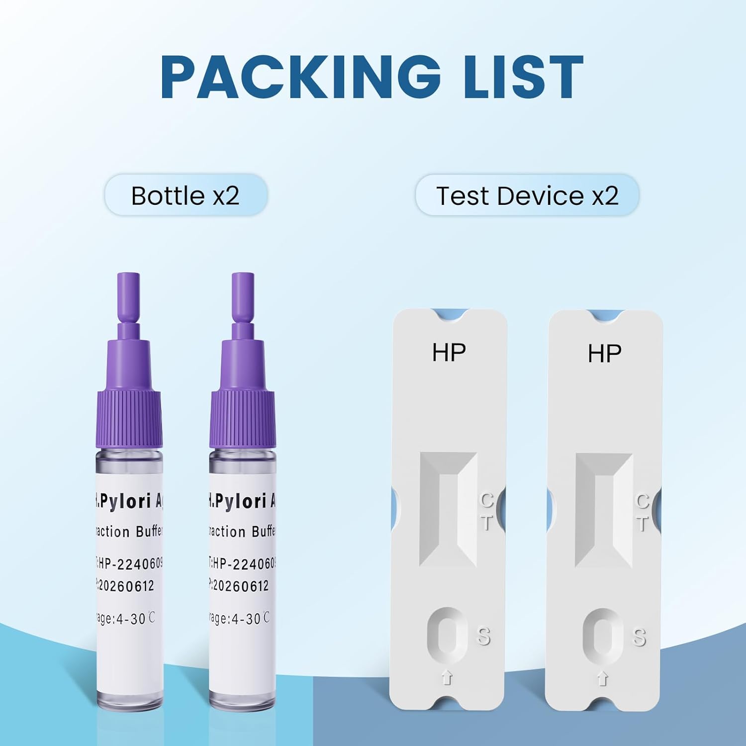 O kit contém 2 peças de teste H. Pylori.