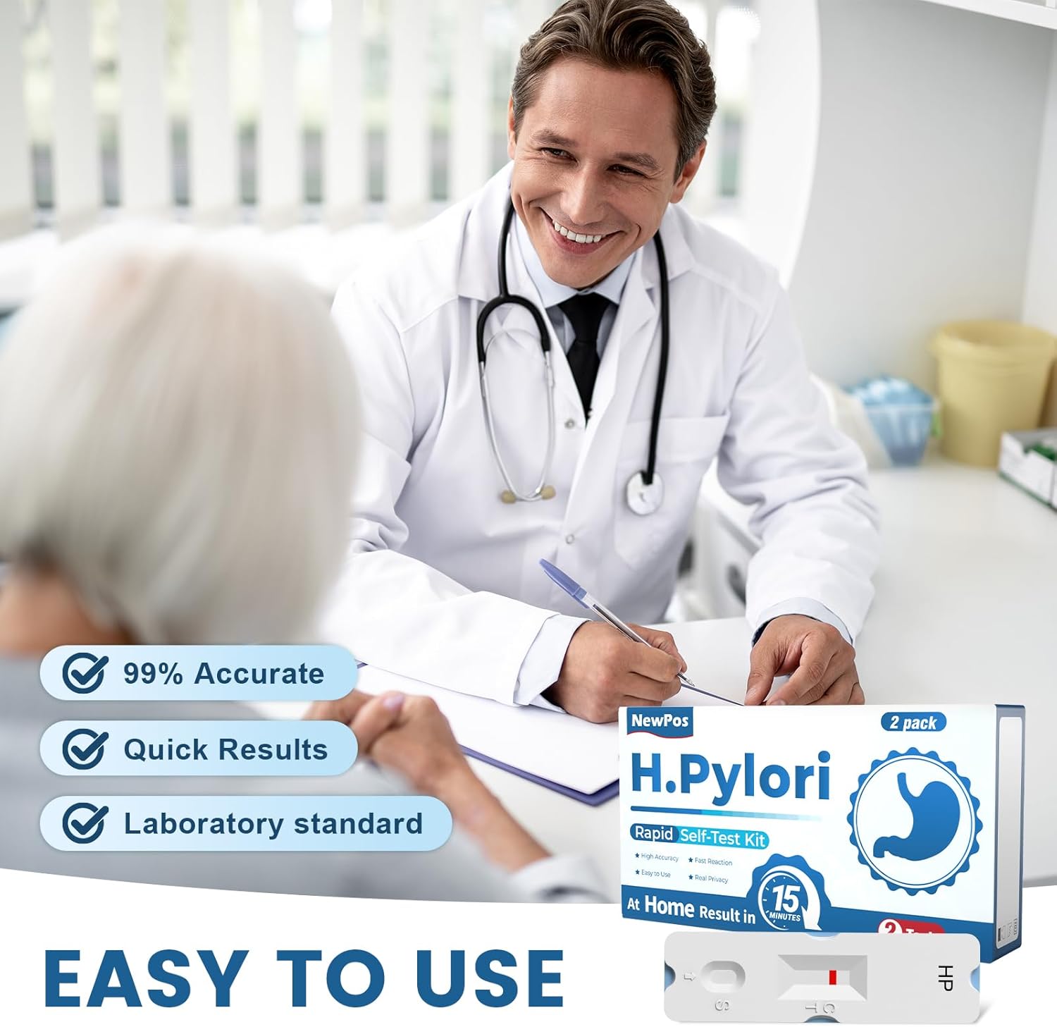 NewPos Kit De Teste H. Pylori – 2 Peças De Teste H. Pylori, Autoteste De Fezes H-Pylori (Antígeno) Para Uso Doméstico, 99,9% Preciso, Resultados Rápidos De 10 A 15 Minutos, Fácil De Usar, Sem Necess