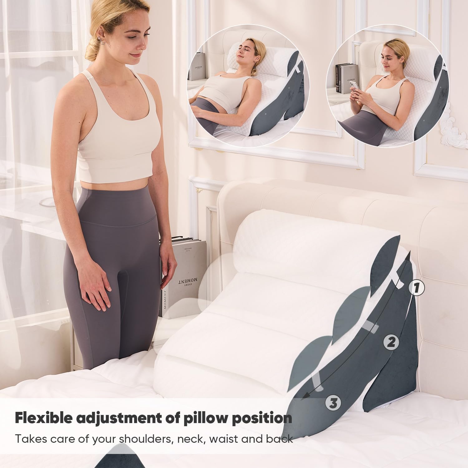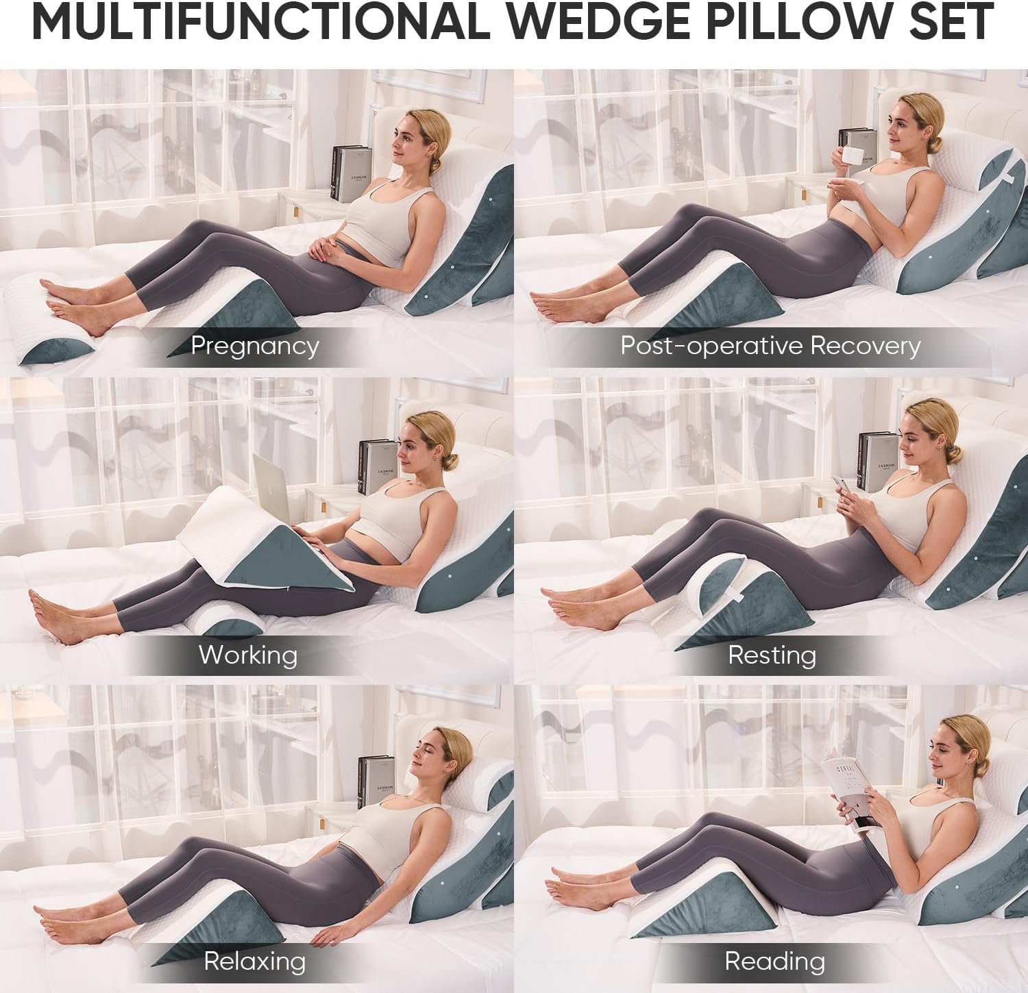 OAISZ Conjunto De 4 Travesseiros Em Cunha Para Pós-Operatório, Cama Ortopédica Espuma Viscoelástica, Sono Ajustável, Alívio Do Refluxo Ácido, Recuperação Pós-Cirúrgica, Suporte As Costas, Elevação D