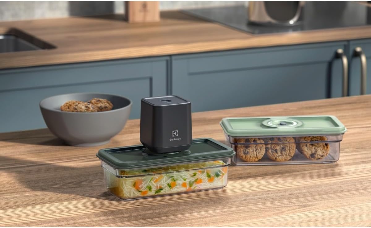 Os Potes Herméticos para Fechamento a Vácuo Electrolux são ideais para conservar seus alimentos por até 5 vezes mais tempo. Com capacidade de 1L cada, eles são perfeitos para armazenar alimentos secos e frescos, além de receitas prontas. As tampas possuem um sistema de dados integrado que facilita a organização e o controle de validade dos alimentos.