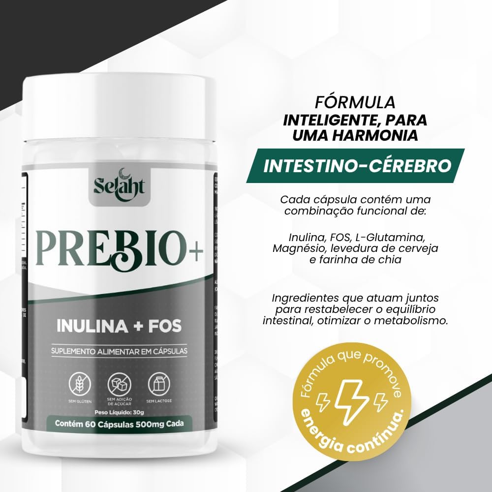Prebio+ Suplemento Prebiótico com L-Glutamina e Magnésio – Equilíbrio Intestinal e Performance – 60 Cápsulas