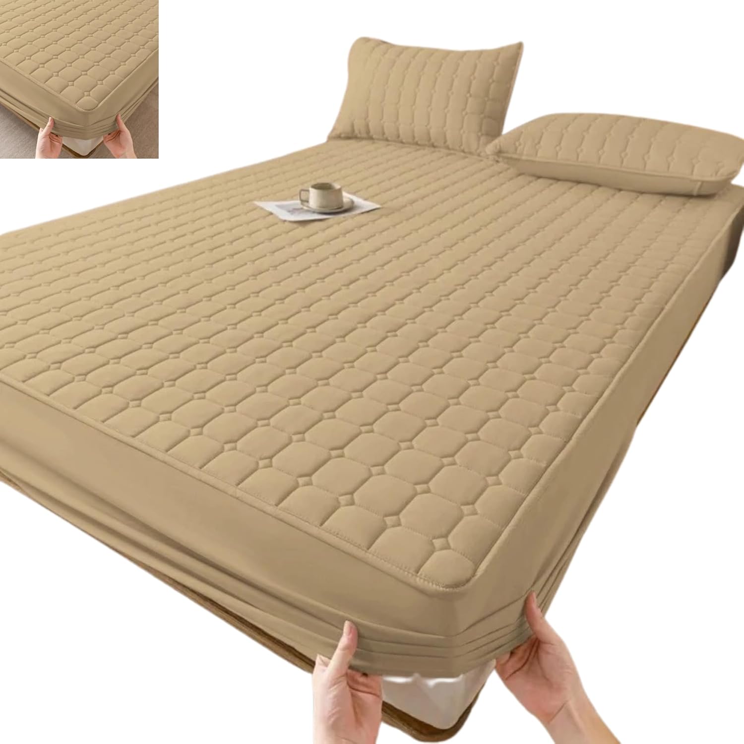 Protetor de Colchão Impermeável Matelado King, Bege, 1,93m x 2,03m x 0,40cm, com Elástico, Poliéster