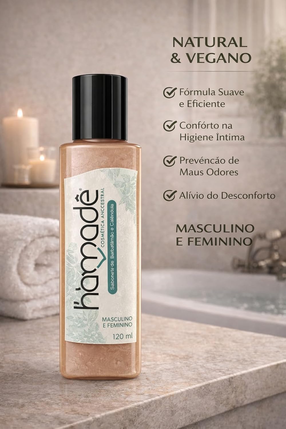 Sabonete Íntimo pH Balanceado Natural e Vegano Barbatimão Melaleuca Higiene Suave 120ml Hamadê