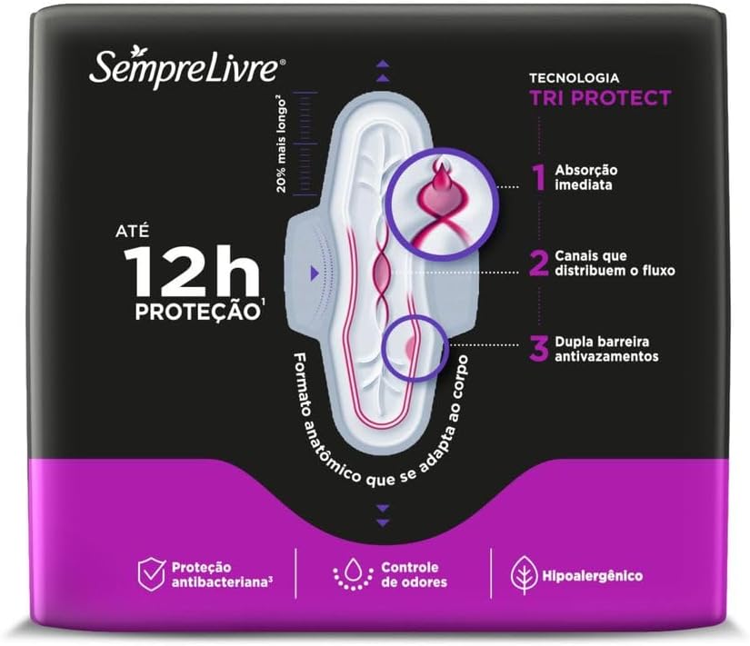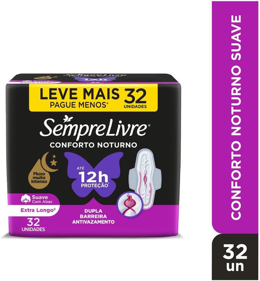 O Sempre Livre® Conforto Noturno é um absorvente higiênico projetado para oferecer até 10 horas de proteção contra vazamentos, ideal para fluxos intensos. Sua forma anatômica se adapta às curvas do corpo, garantindo conforto durante a noite. Com a tecnologia TRI PROTECT, ele proporciona absorção imediata e conta com uma dupla barreira antivazamento.