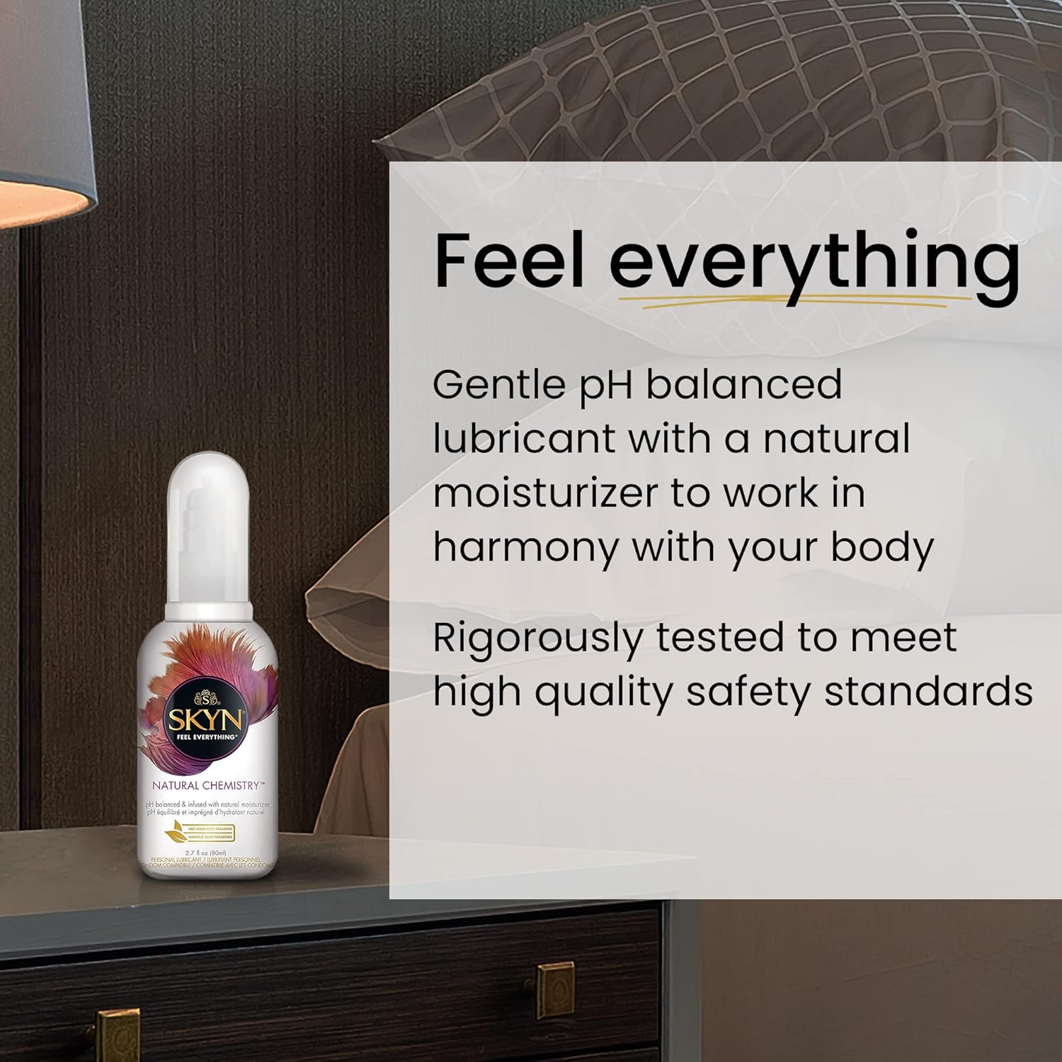 SKYN Lubrificante de química natural – 2,7 fl. oz – pH equilibrado, lançamento à base de água infundido com hidratante natural