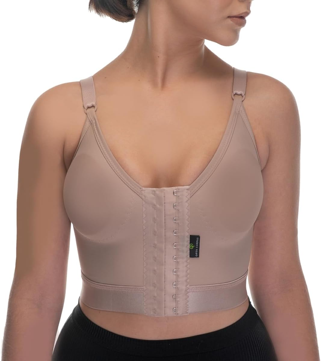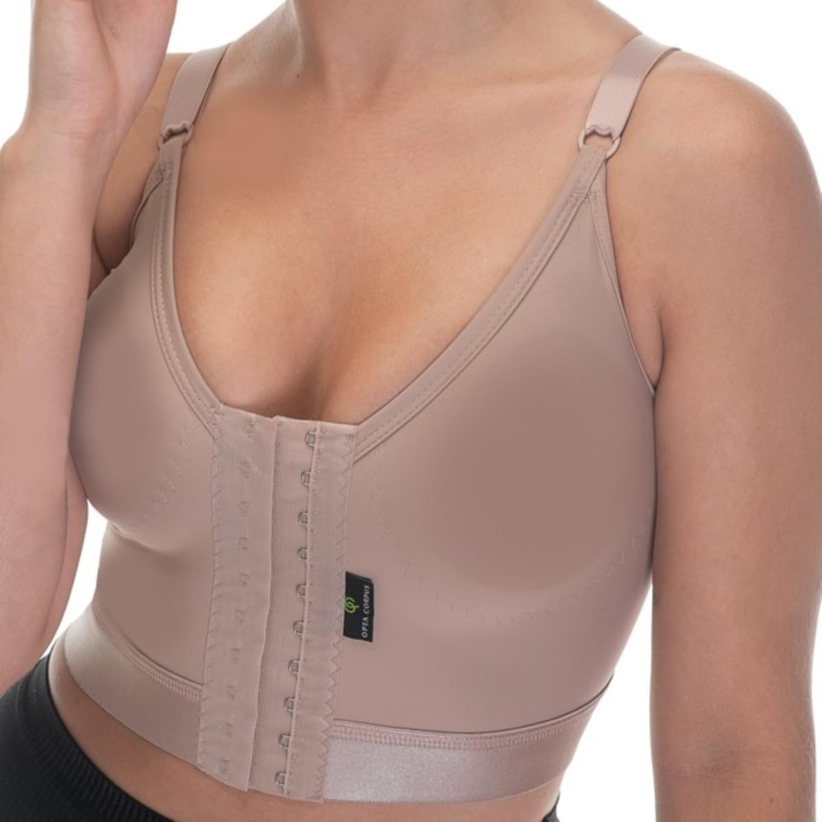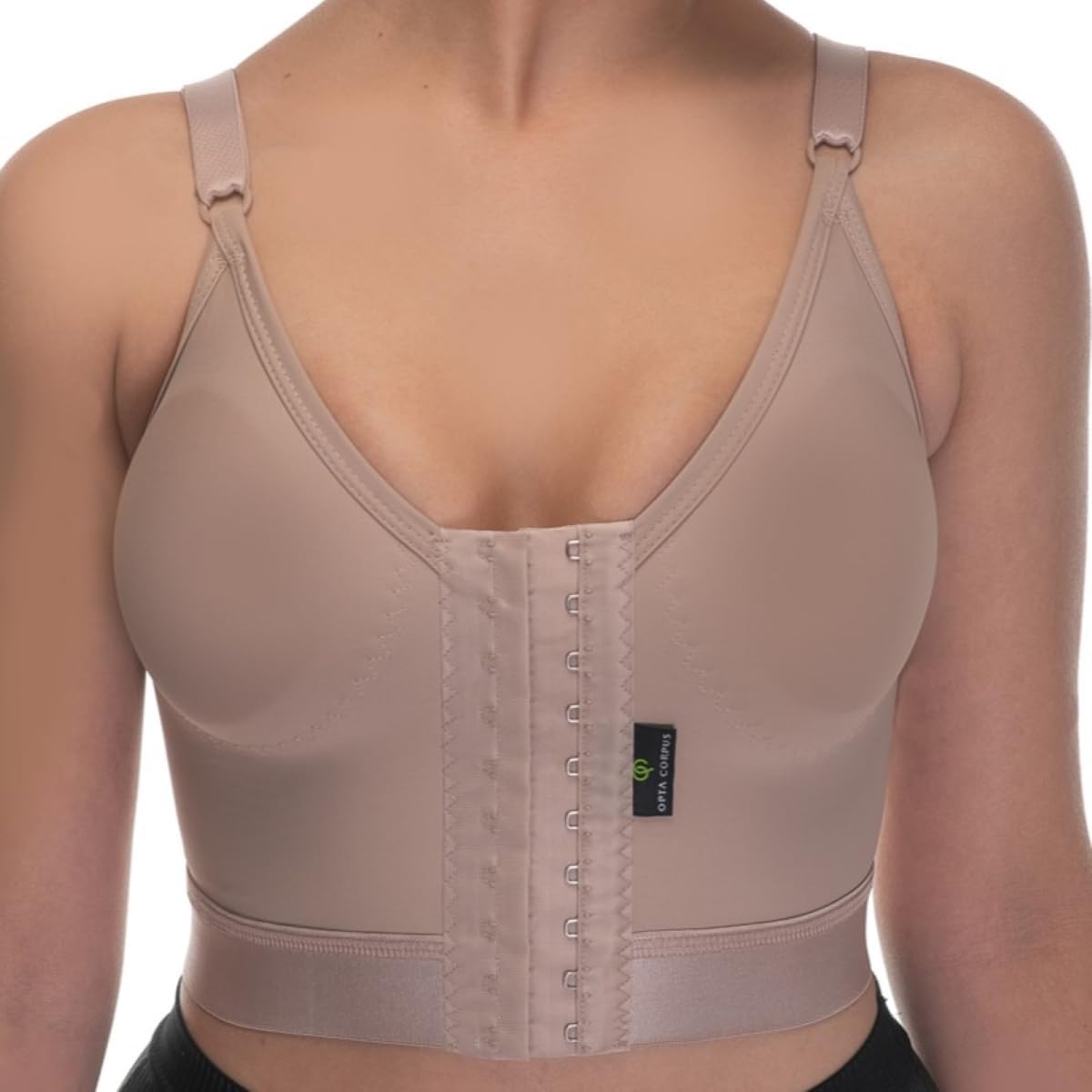Sutiã de Alta Sustentação e Pós-Cirúrgico Opta Corpus 700B com Reforço, Elástico na Base e Fecho Frontal, para Mamoplastia e Uso Diário