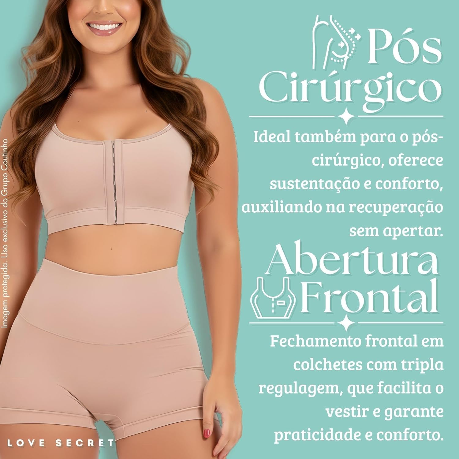 Sutiã Pós-Cirúrgico Alta Sustentação Top Control Love Secret com Abertura Frontal