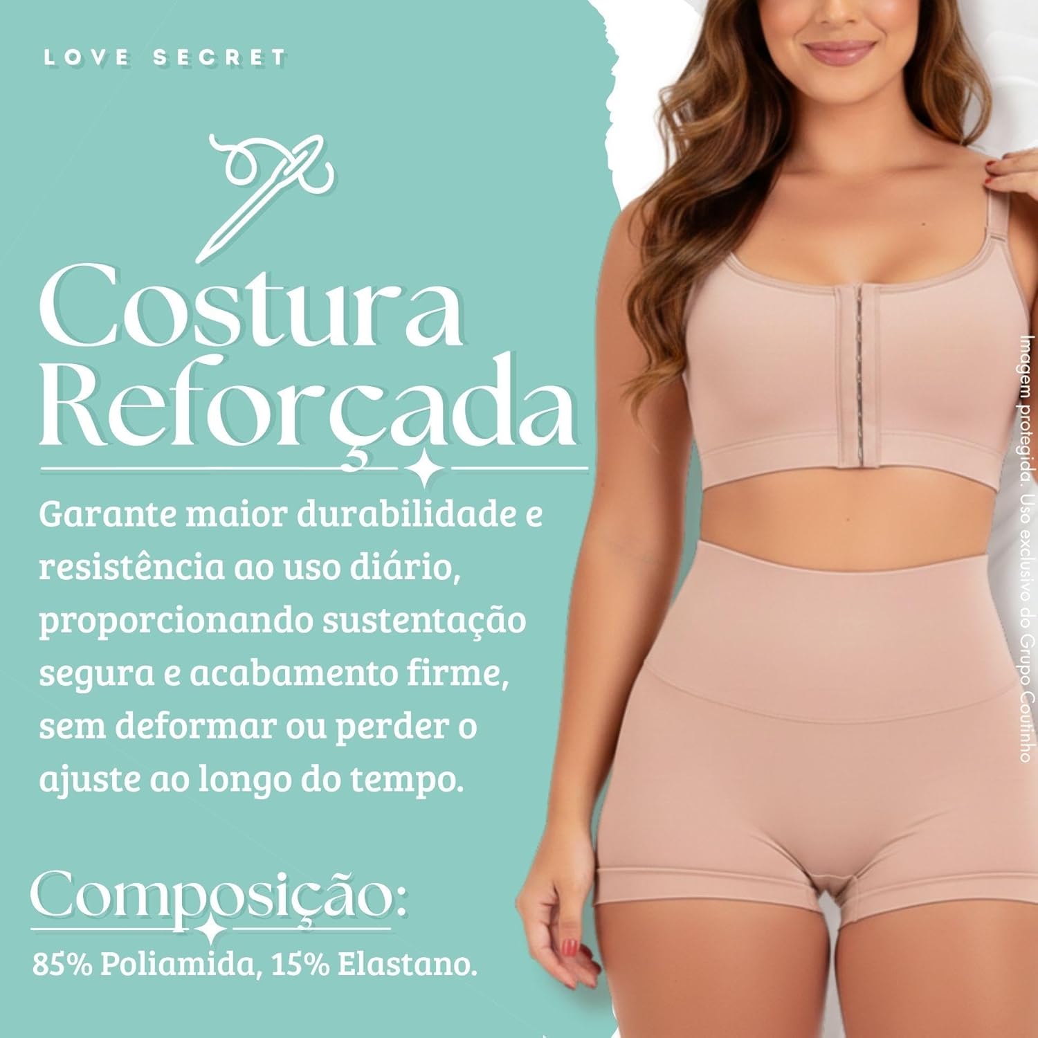 A Sutiã Pós-Cirúrgico Alta Sustentação Top Control Love Secret foi projetada para proporcionar conforto e segurança durante o período de recuperação. Com abertura frontal, facilita o vestir e oferece praticidade no dia a dia. Sua costura reforçada assegura durabilidade e suporte eficiente, mantendo os seios bem posicionados sem causar desconforto. Feito de poliamida e elastano, possui toque macio e excelente elasticidade, sendo ideal tanto para o pós-operatório quanto para o uso diário.