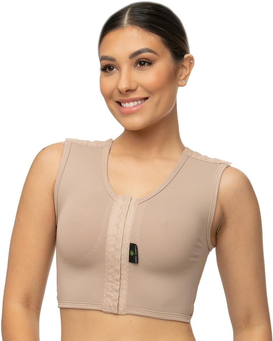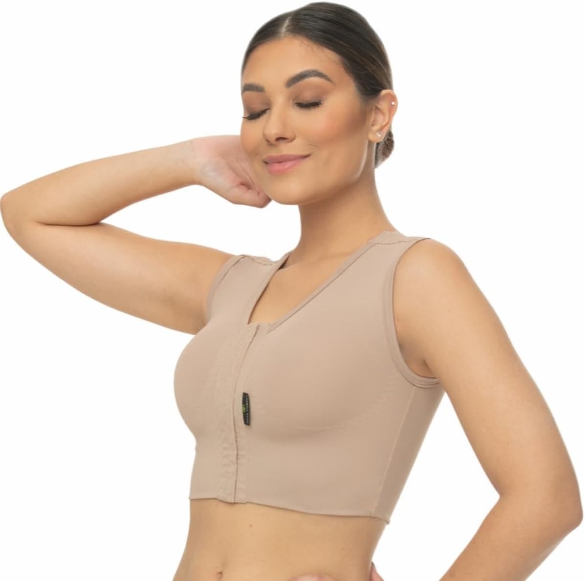 Sutiã Pós-Cirúrgico Mamoplastia, Alça Regata, Tecido Bioestimulante, Fecho Frontal, Opta Corpus, Registro ANVISA