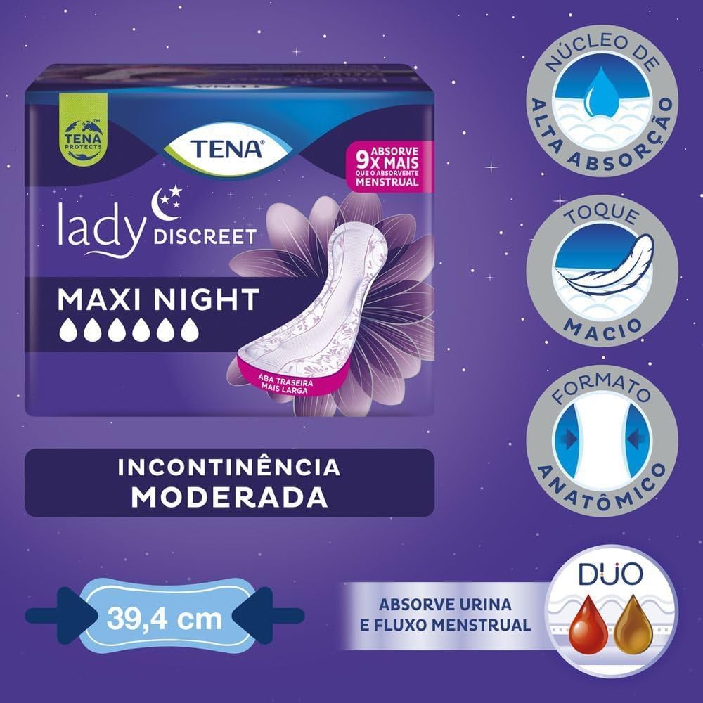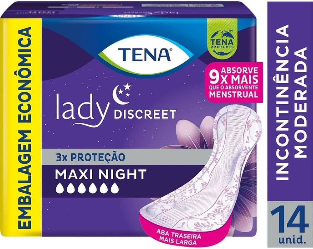 Tena Lady Discreet, Absorvente para Incontinência Urinária Moderada, Maxi Night, sem abas – 14 unidades